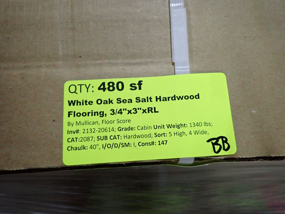 White Oak Sea Salt Hardwood Flooring 3/4" x 3" RL. Made By Mullican, Floor Score, Grade: Cabin *Any manufacturer warranties are NOT VALID with any purchase at our Auctions unless stated otherwise.. Weight: 1340. Sold by: Square Foot. Sold as: Quantity x Price.