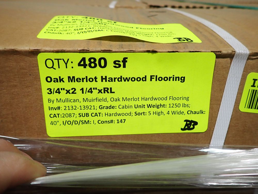 Oak Merlot Hardwood Flooring 3/4" x 2 1/4" x RL. By Mullican, Muirfield, Oak Merlot Hardwood Flooring, Grade: Cabin, 20 Boxes. *Any manufacturer warranties are NOT VALID with any purchase at our Auctions unless stated otherwise.. Weight: 1250. Sold by: Square Foot. Sold as: Quantity x Price.