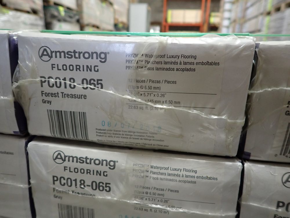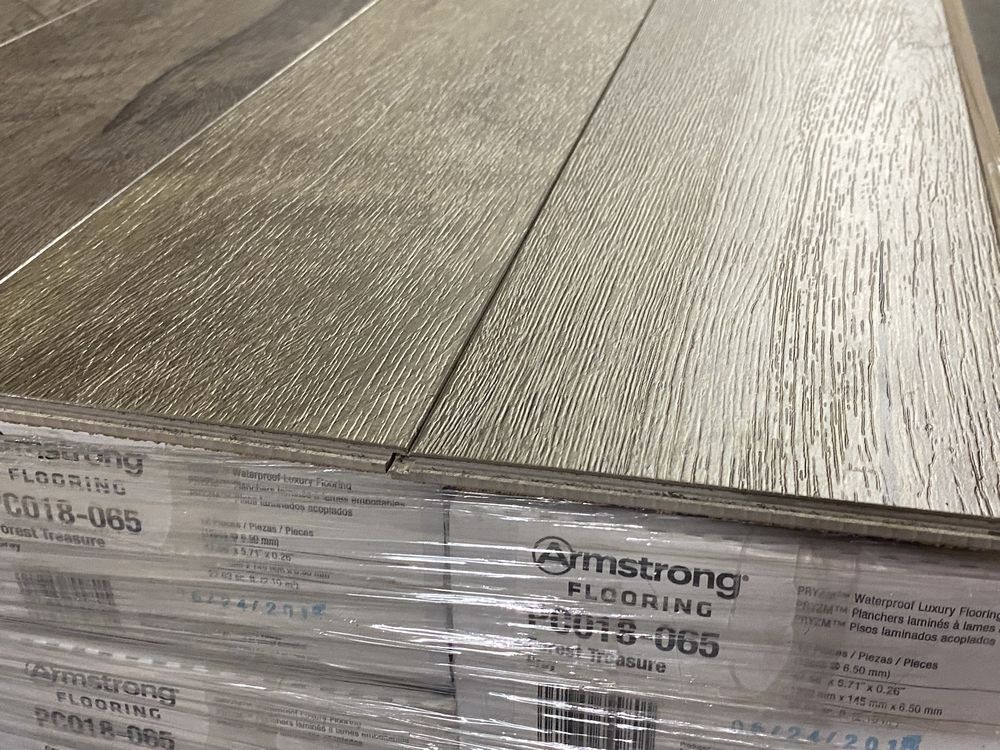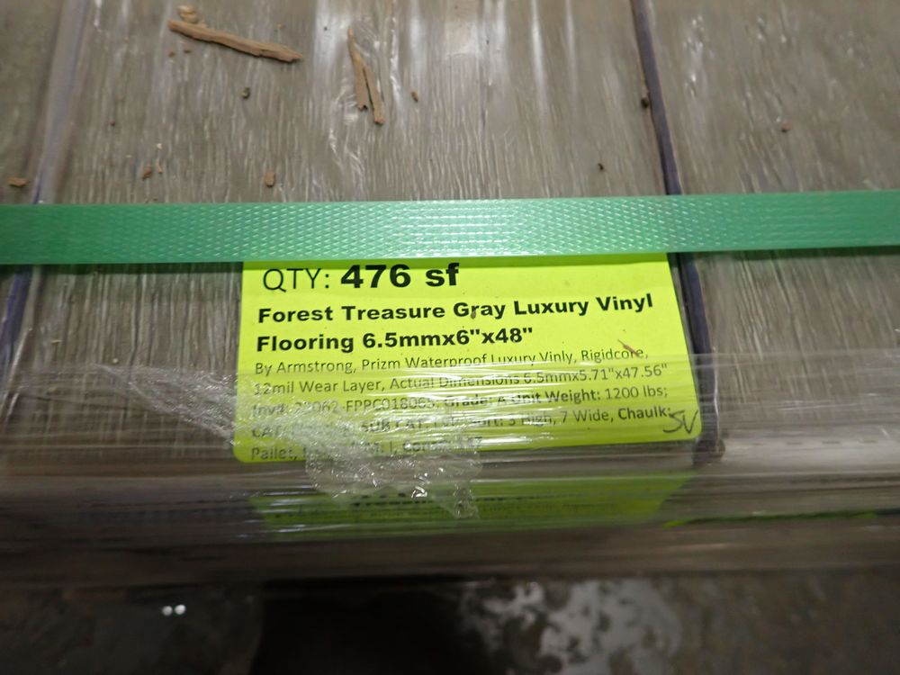 Forest Treasure Gray Luxury Vinyl Flooring 6.5mm x 6" x 48". By: Armstrong, Prizm Waterproof Luxury Vinyl. Rigidcore, 12mil Wear Layer, Actual Dimensions 6.5mm x 5.71" x 47.56". 21 Boxes, 12 Pieces Per Box, 22.63 Square Foot in Each Box. Grade: A *Any manufacturer warranties are NOT VALID with any purchase at our Auctions unless stated otherwise.. Weight: 1200. Sold by: Square Foot. Sold as: Quantity x Price.