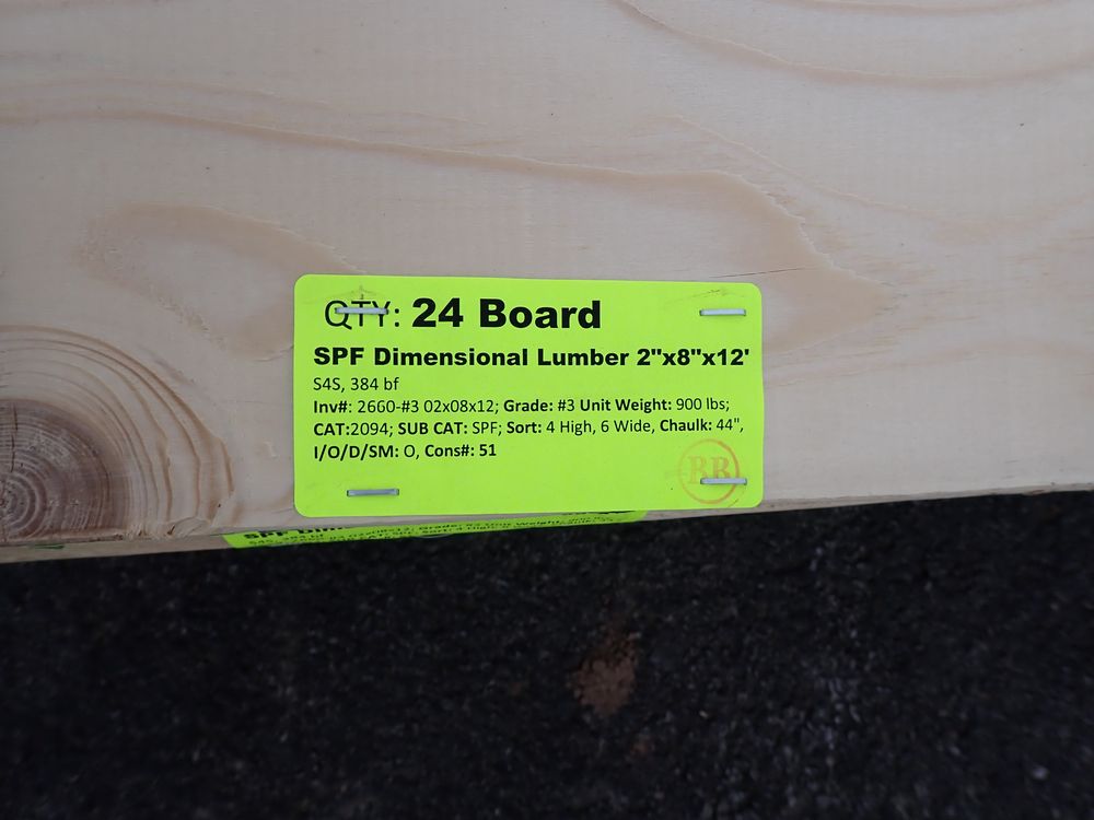 SPF Dimensional Lumber 2" x 8" x 12'. S4S, 384. Grade: B. *Any manufacturer warranties are NOT VALID with any purchase at our Auctions unless stated otherwise.. Weight: 900. Sold by: Board. Sold as: Quantity x Price.