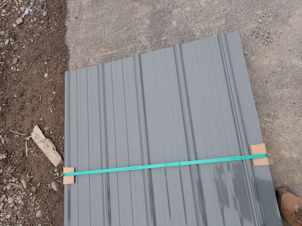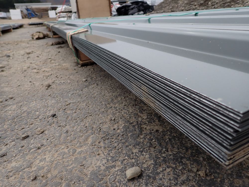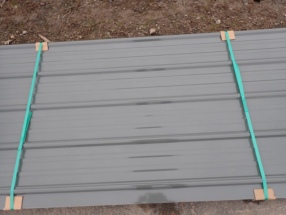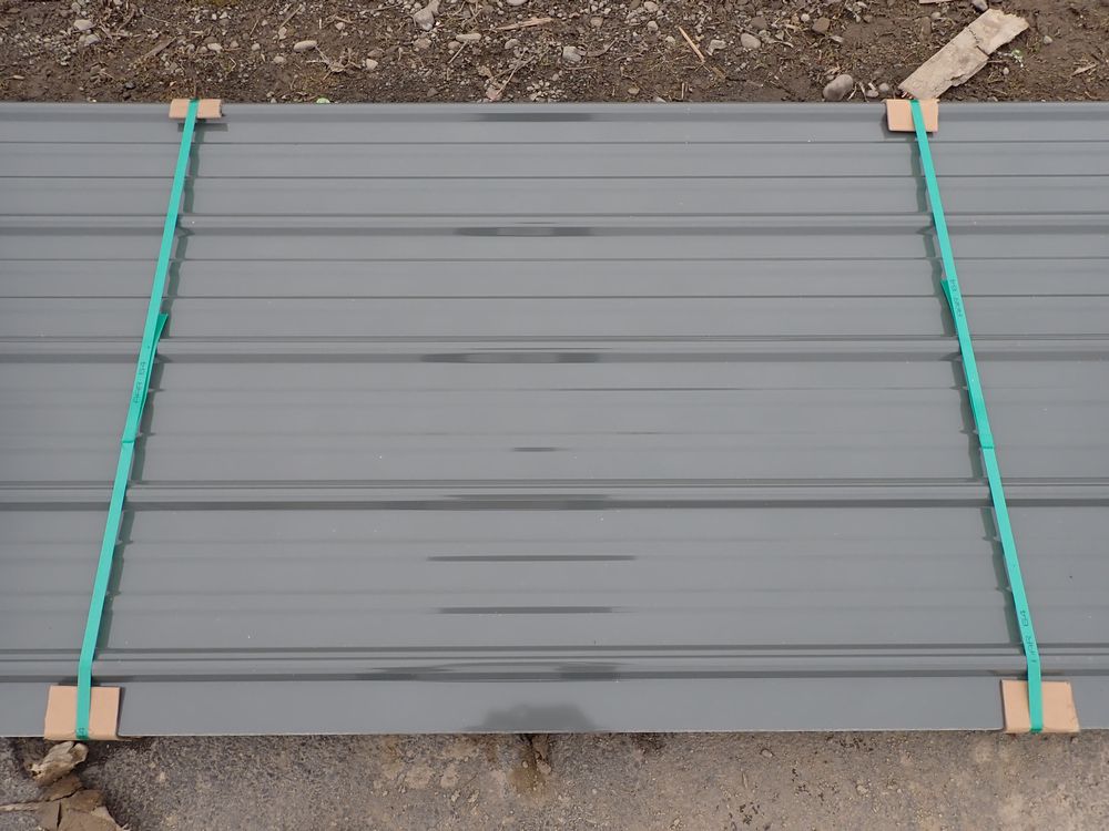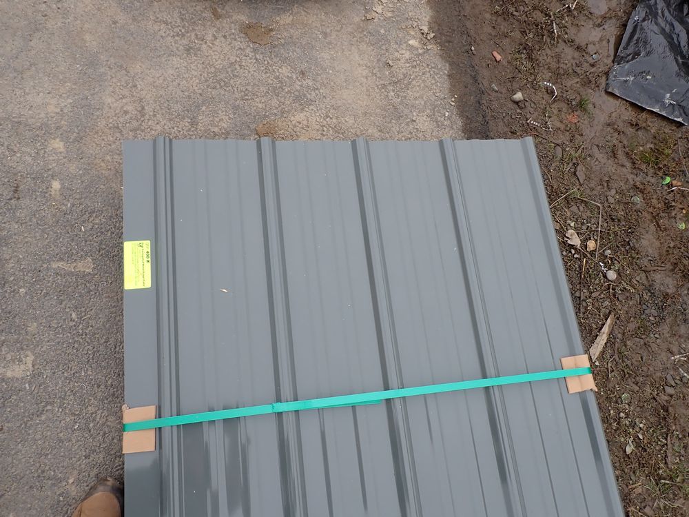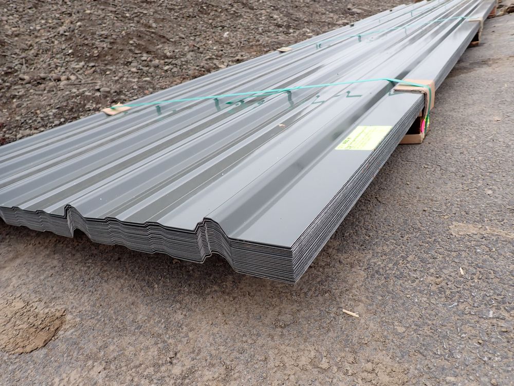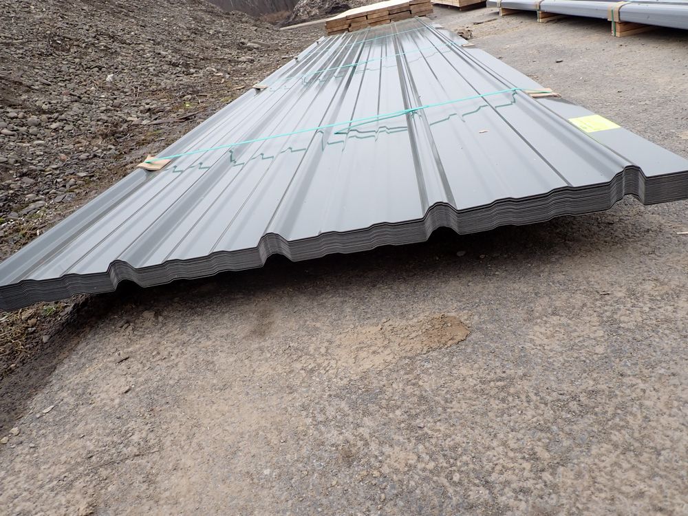 Gray Corrugated Metal Panel 3'x16'. 24 Guage, 25 Piece. Grade: B *Any manufacturer warranties are NOT VALID with any purchase at our Auctions unless stated otherwise.. Weight: 1300 lbs.. Sold by: Linear Foot. Sold as: Quantity x Price.