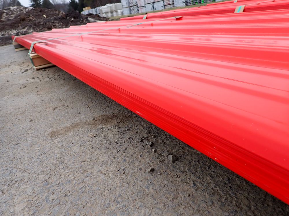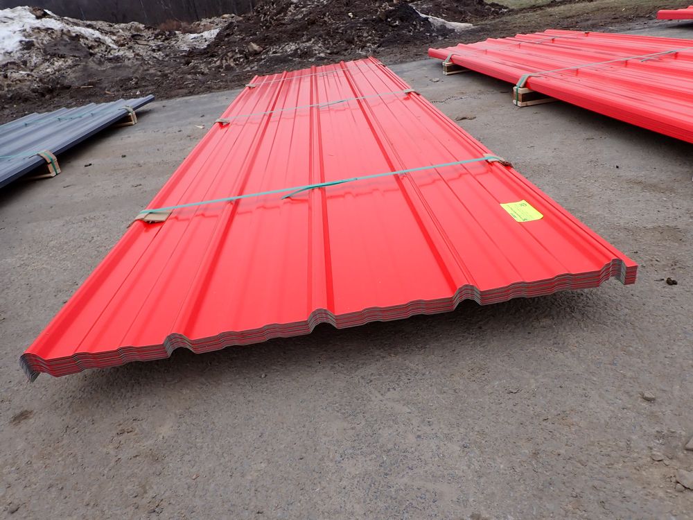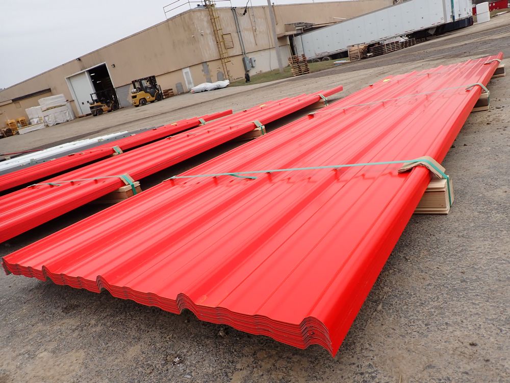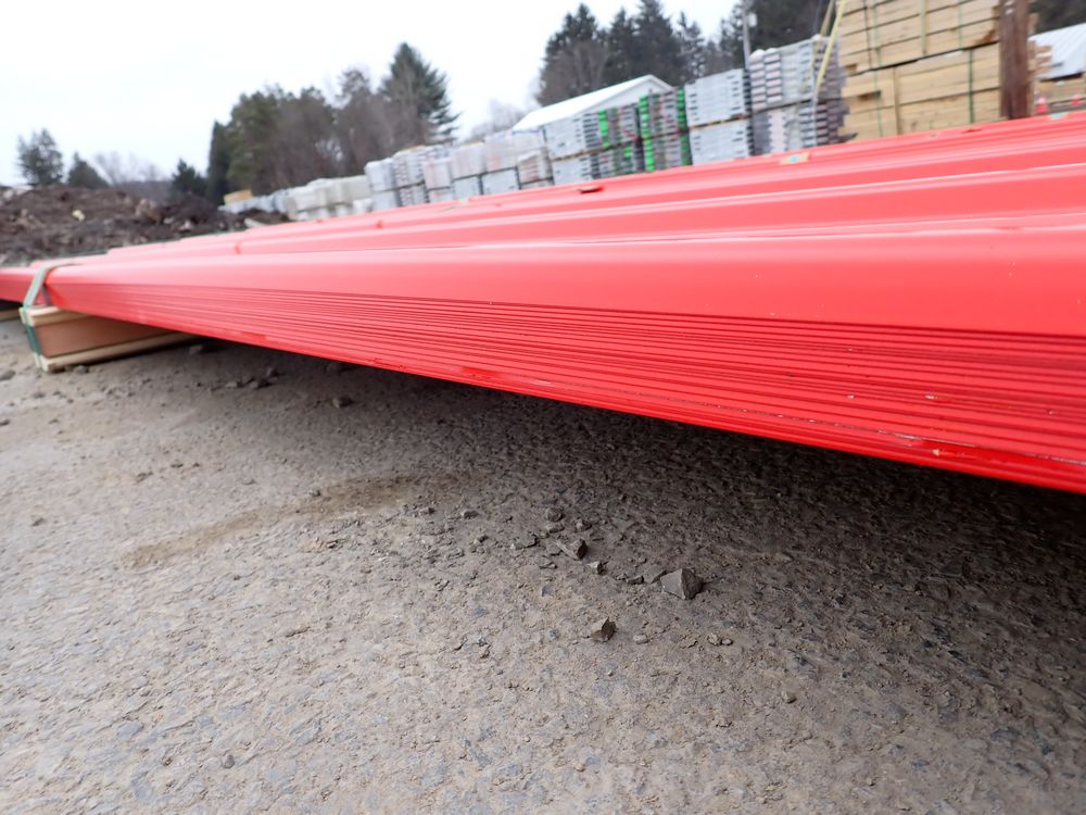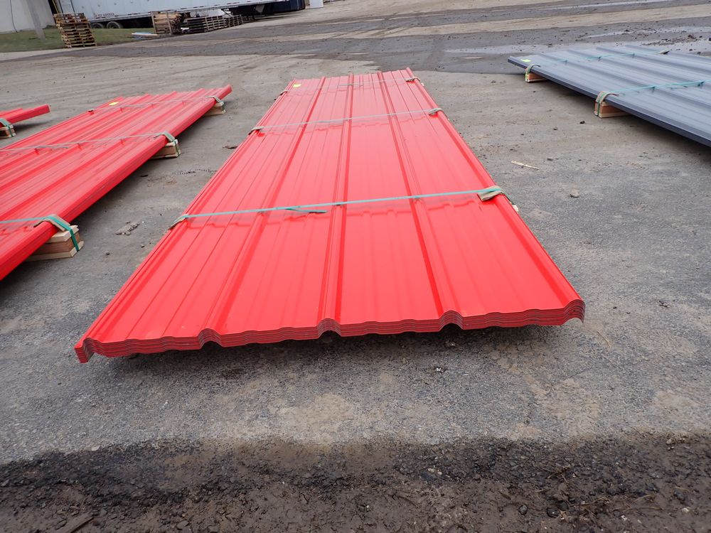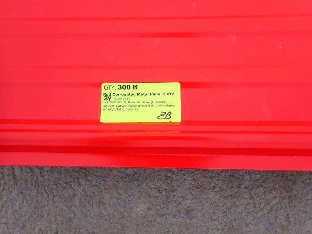 Red Corrugated Metal Panel 3'x12'. 24 Guage, 25 Piece. Grade: B *Any manufacturer warranties are NOT VALID with any purchase at our Auctions unless stated otherwise.. Weight: 650 lbs.. Sold by: Linear Foot. Sold as: Quantity x Price.