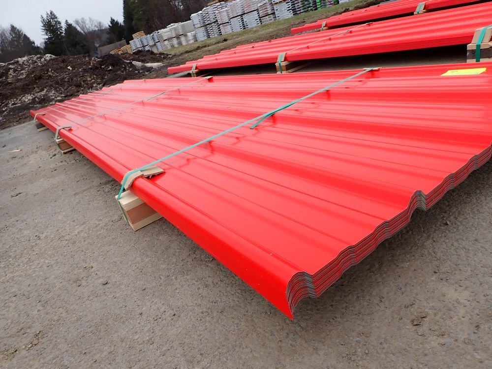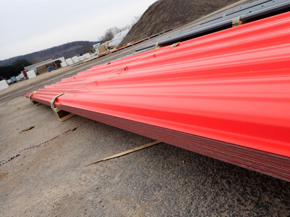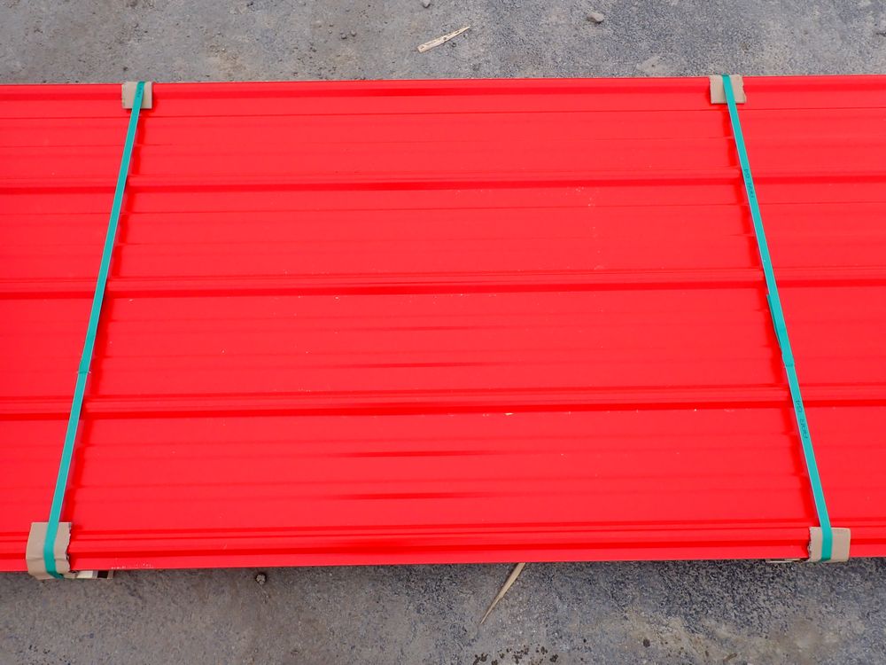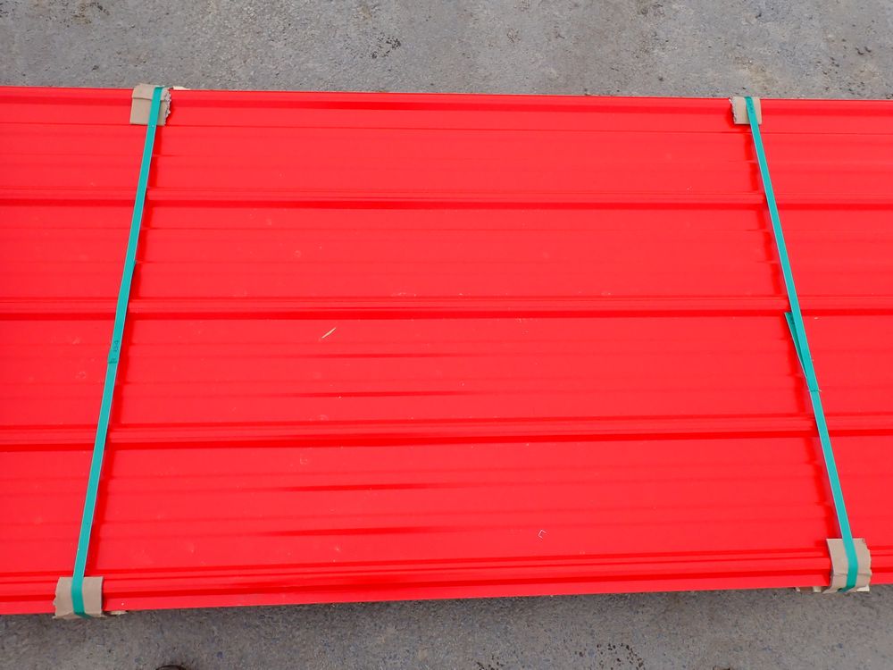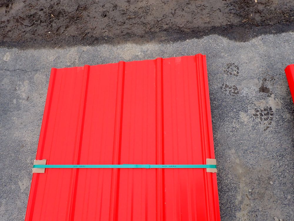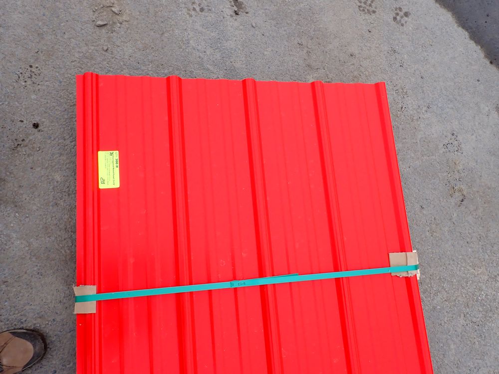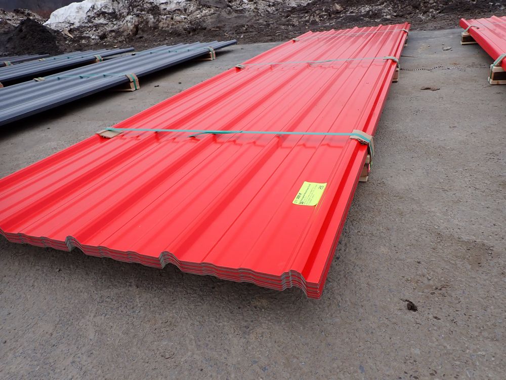 Red Corrugated Metal Panel 3'x12'. 24 Guage, 25 Piece. Grade: B *Any manufacturer warranties are NOT VALID with any purchase at our Auctions unless stated otherwise.. Weight: 650 lbs.. Sold by: Linear Foot. Sold as: Quantity x Price.