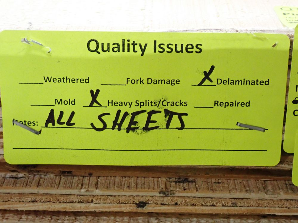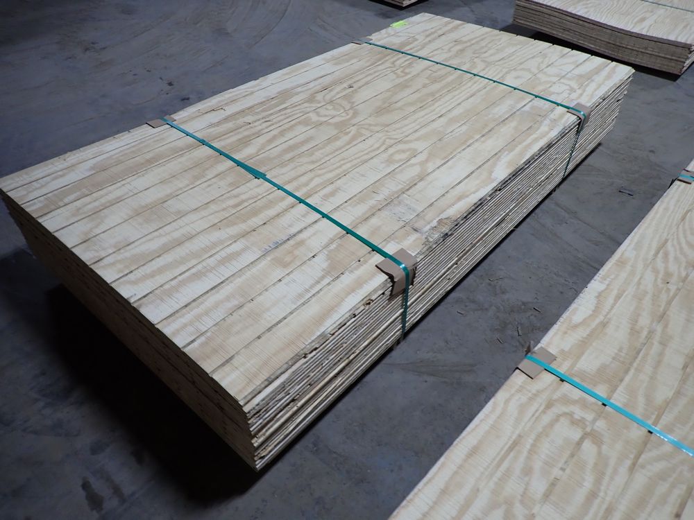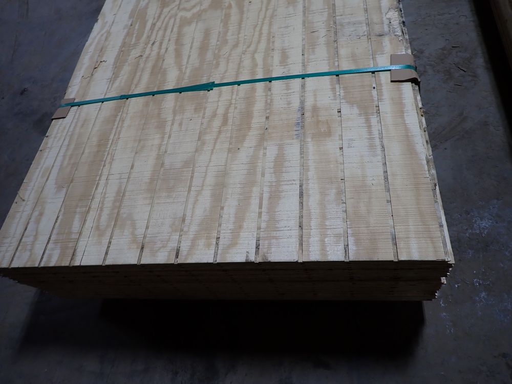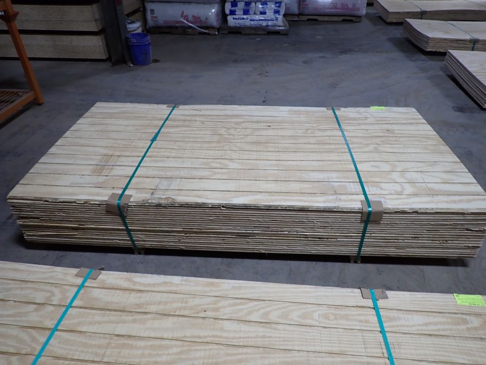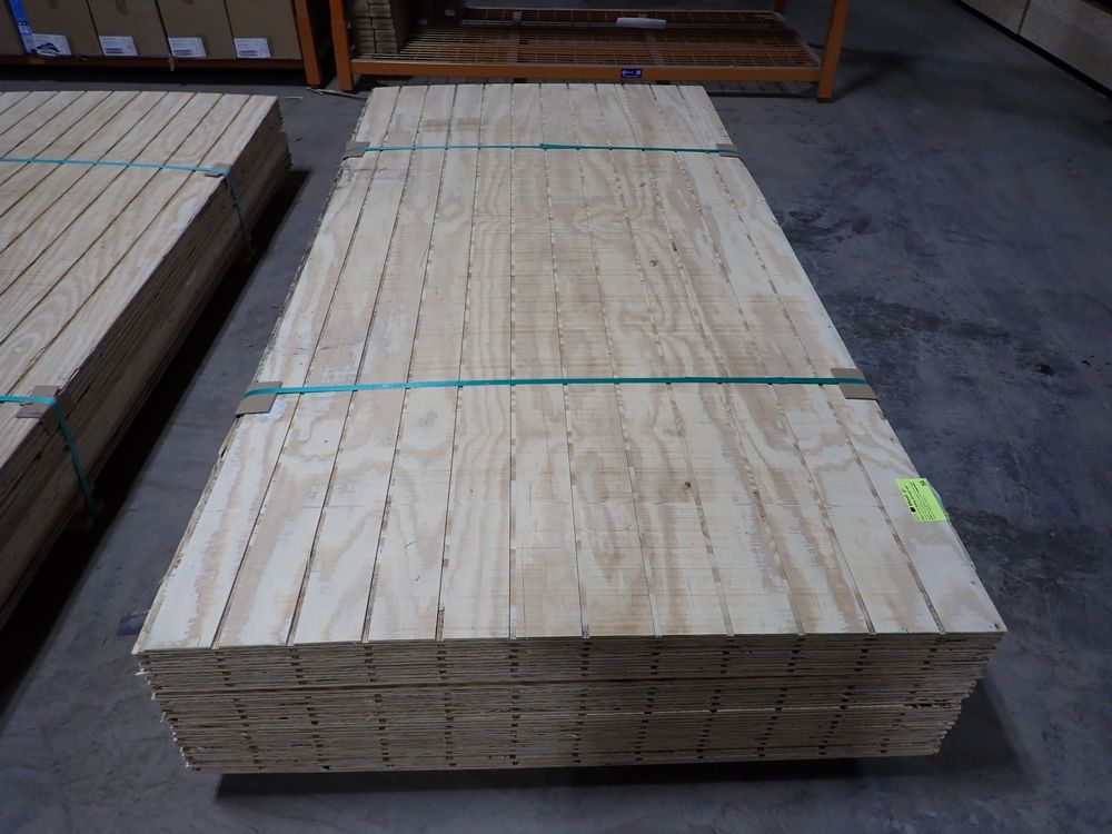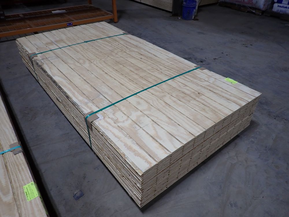 Pine T1-11 Siding 5/8" x 48" x 96" *See Desc. Tongue And Groove, 4" OC, Grade: Shop, Delaminated, Heavy Splits/Cracks, All Sheets, Face Side Has All Edge And Center Bead, Back Of Board Profile Varies *Any manufacturer warranties are NOT VALID with any purchase at our Auctions unless stated otherwise.. Weight: X. Sold by: Sheet. Sold as: Quantity x Price.
