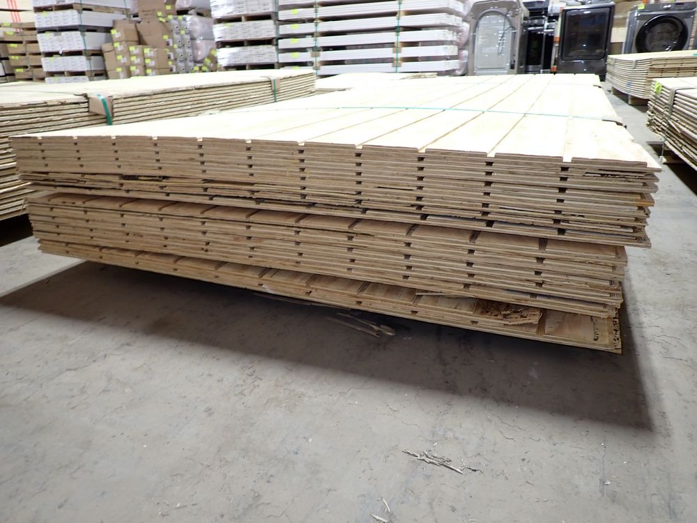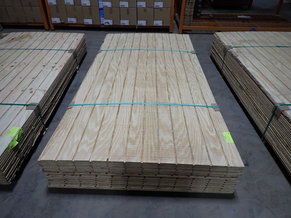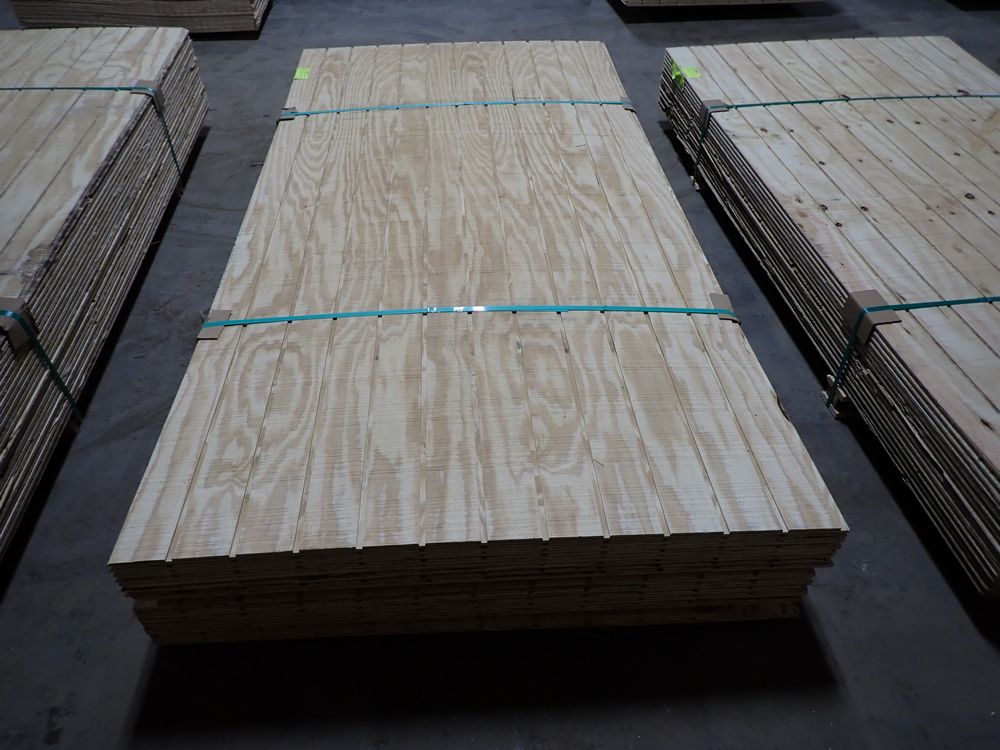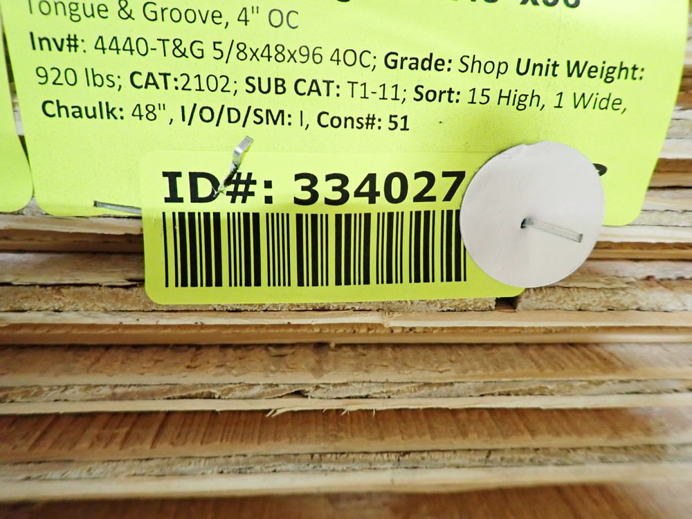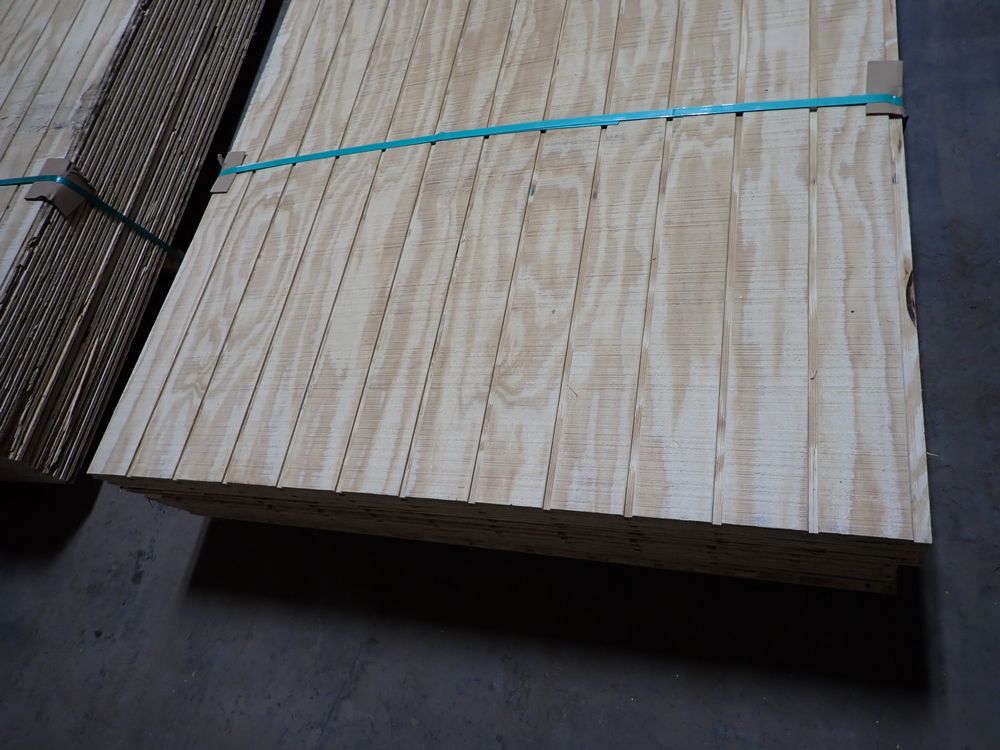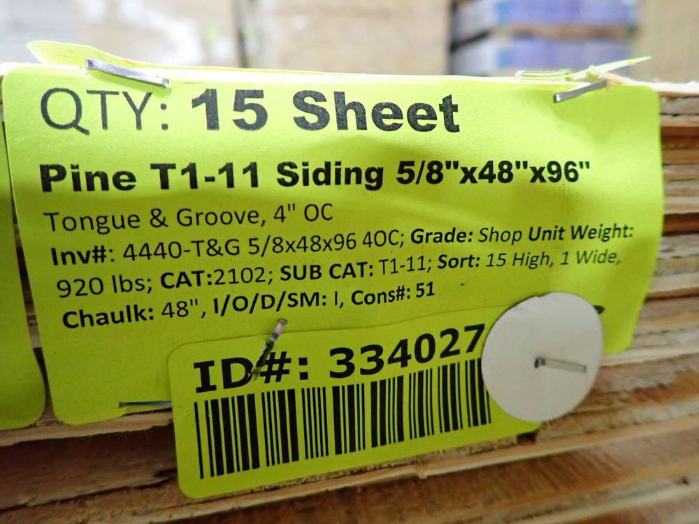 Pine T1-11 Siding 5/8" x 48" x 96" *See Desc. Tongue And Groove, 4" OC, Grade: Shop, Delaminated, Heavy/Cracks, All Sheets, Face Side Has All Edge And Center Bead, Back Of Board Profile Varies *Any manufacturer warranties are NOT VALID with any purchase at our Auctions unless stated otherwise.. Weight: 920. Sold by: Sheet. Sold as: Quantity x Price.