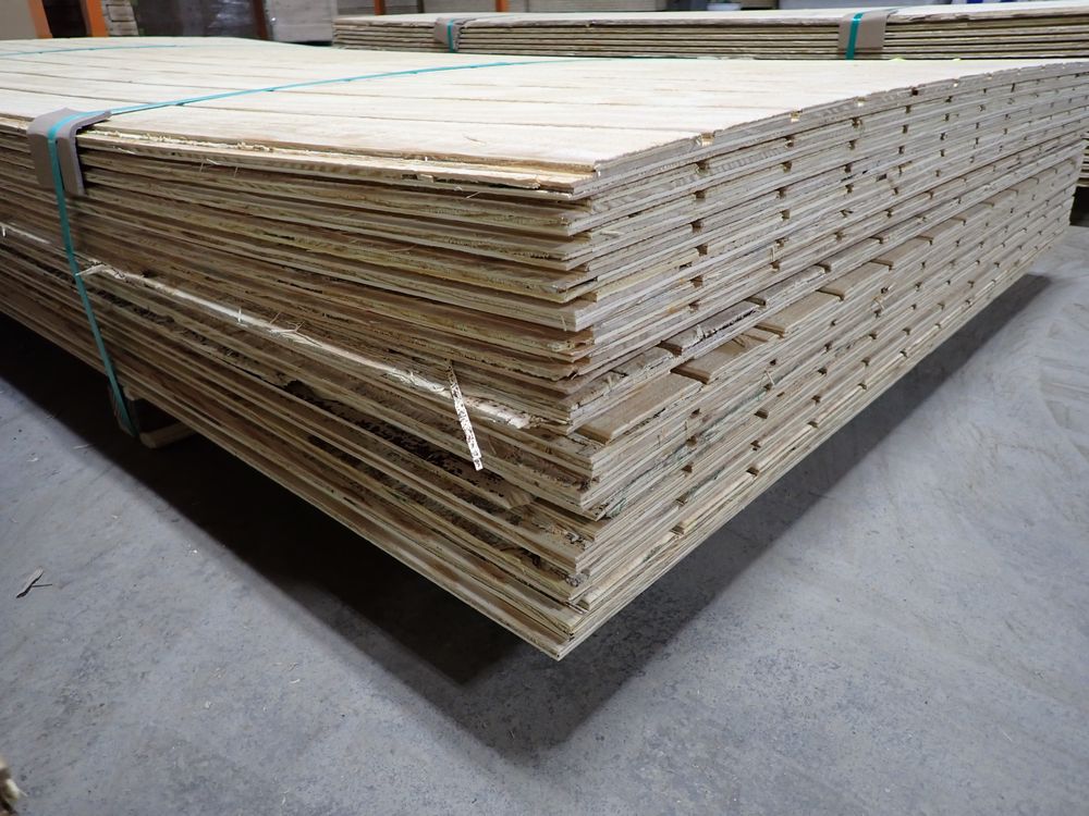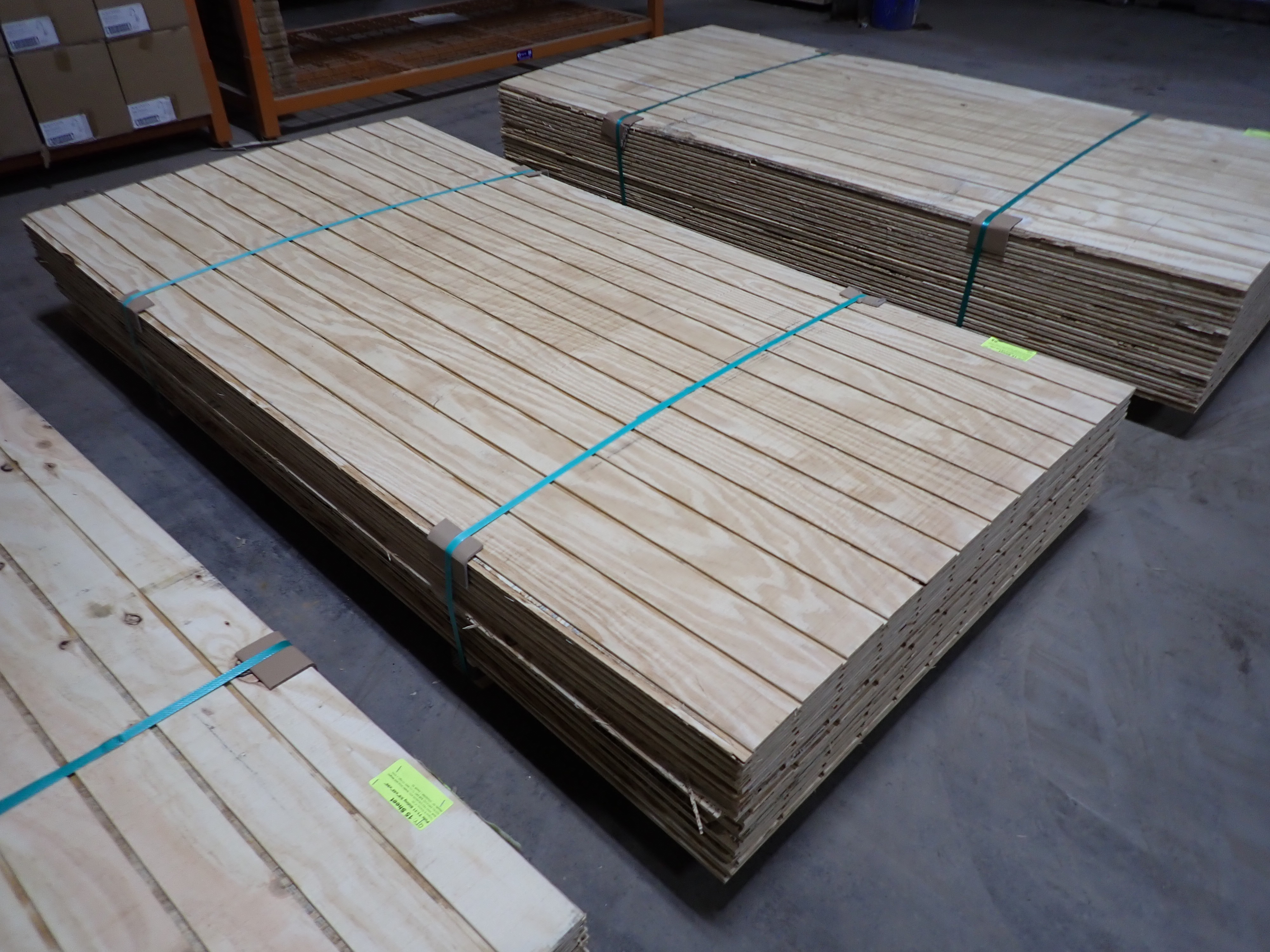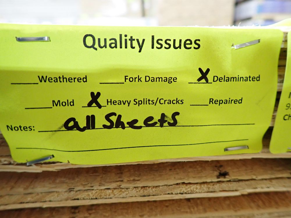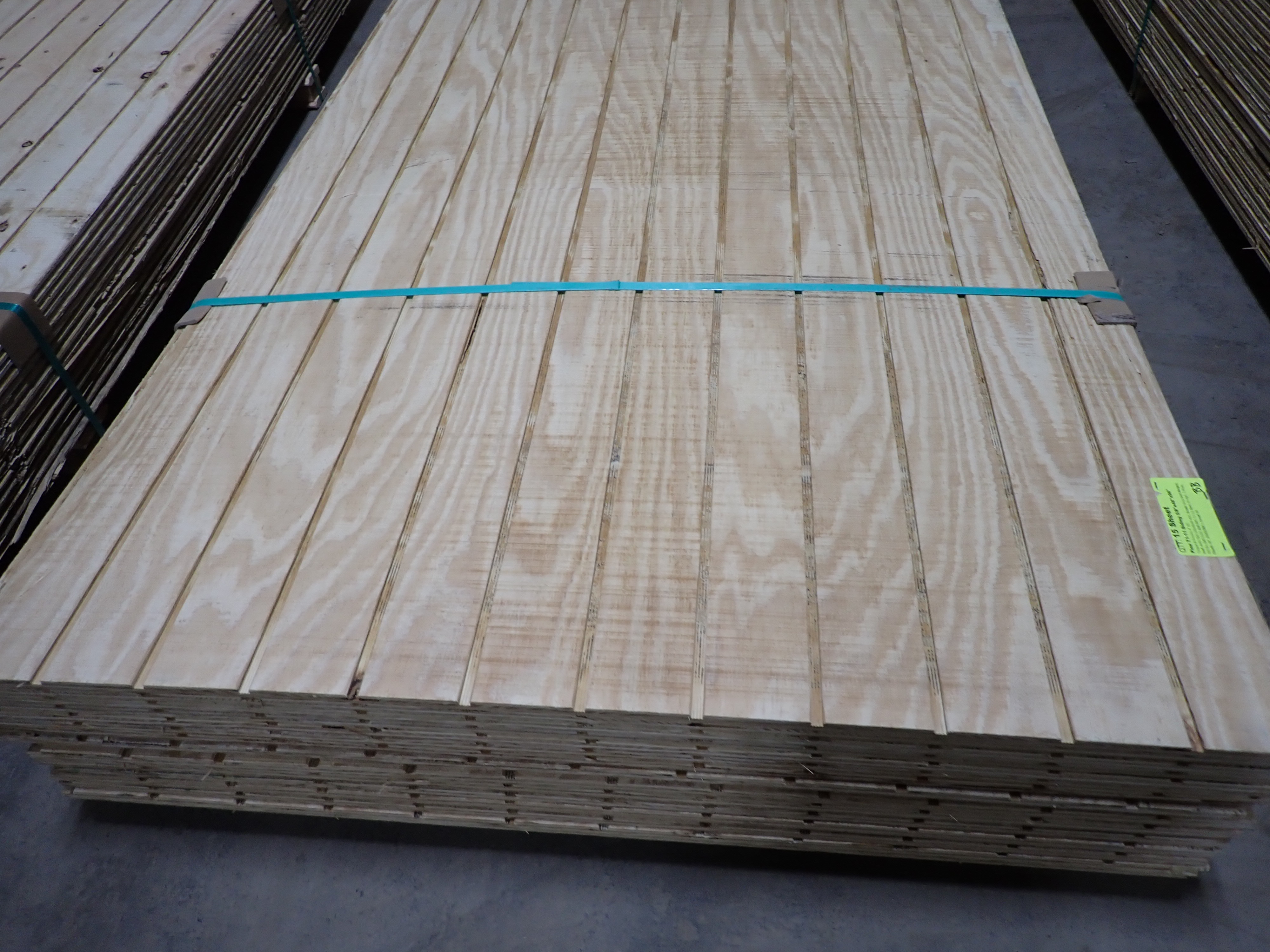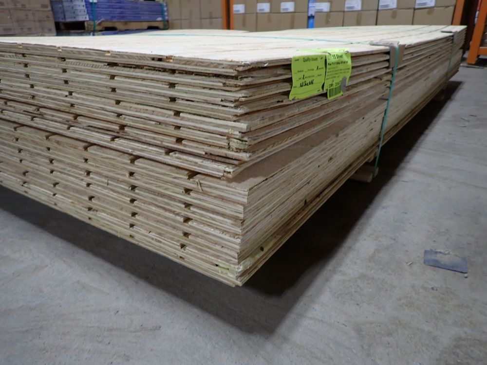 Pine T1-11 Siding 5/8" x 48" x 96" *See Desc. Tongue And Groove, 4" OC, Grade: Shop, Delaminated, Heavy/Cracks, All Sheets, Face Side Has All Edge And Center Bead, Back Of Board Profile Varies *Any manufacturer warranties are NOT VALID with any purchase at our Auctions unless stated otherwise.. Weight: 920. Sold by: Sheet. Sold as: Quantity x Price.
