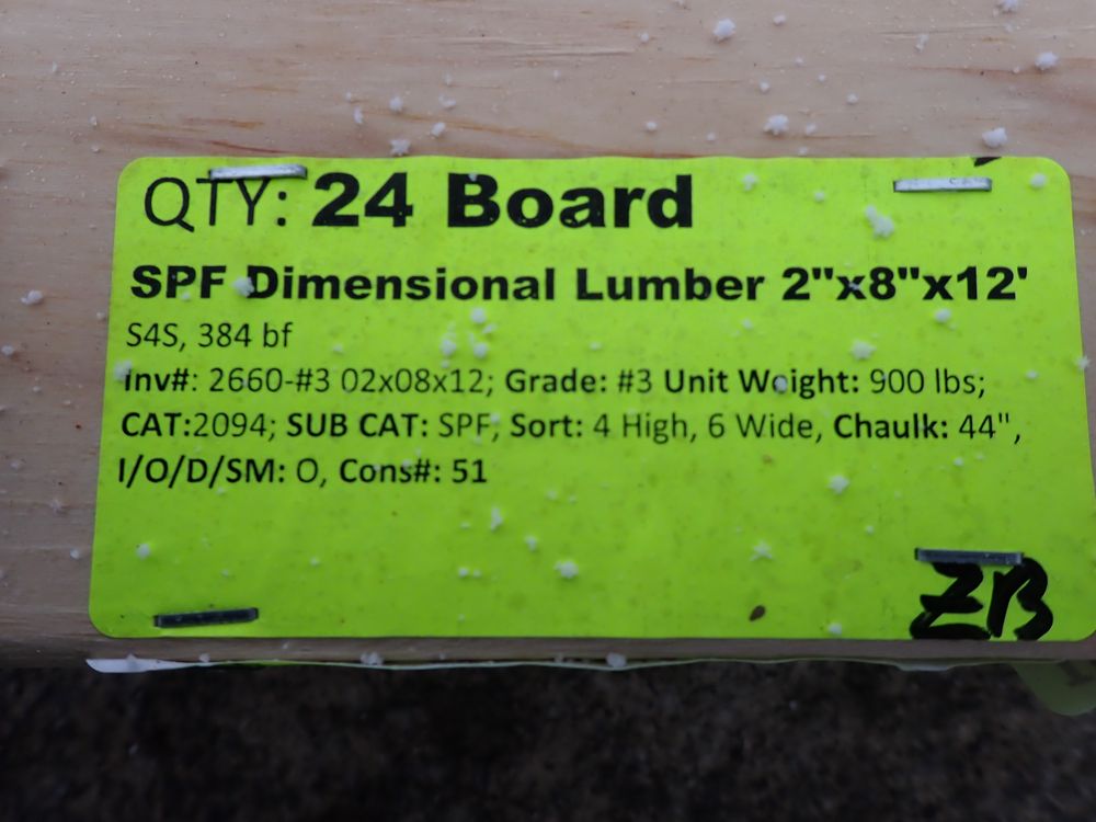 SPF Dimensional Lumber 2" x 8" x 12'. S4S, 384 bf. Grade: #3. *Any manufacturer warranties are NOT VALID with any purchase at our Auctions unless stated otherwise.. Weight: 900. Sold by: Board. Sold as: Quantity x Price.