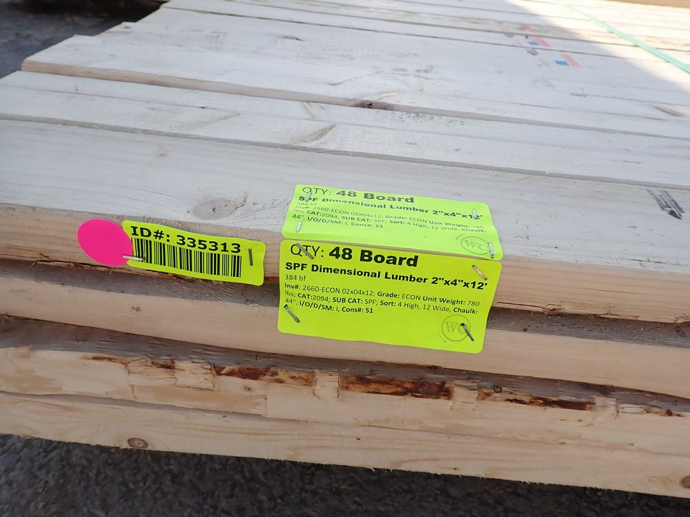 SPF Dimensional Lumber 2" x 4" x 12'. 384 bf. Grade: ECON *Any manufacturer warranties are NOT VALID with any purchase at our Auctions unless stated otherwise.. Weight: 780. Sold by: Board. Sold as: Quantity x Price.