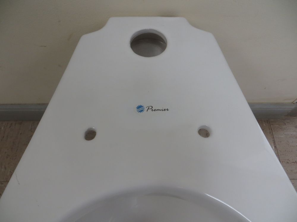 White Elongated Toilet-Floor Mount. By: Premier, Commercial Flushometer Style, 1 gpf, Grade: A *NOTE: This Toilet Does NOT Have A Tank, It Requires A Flushometer(NOT INCLUDED). Weight: 55. Sold by: Piece. Sold as: Quantity x Price.