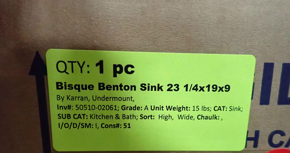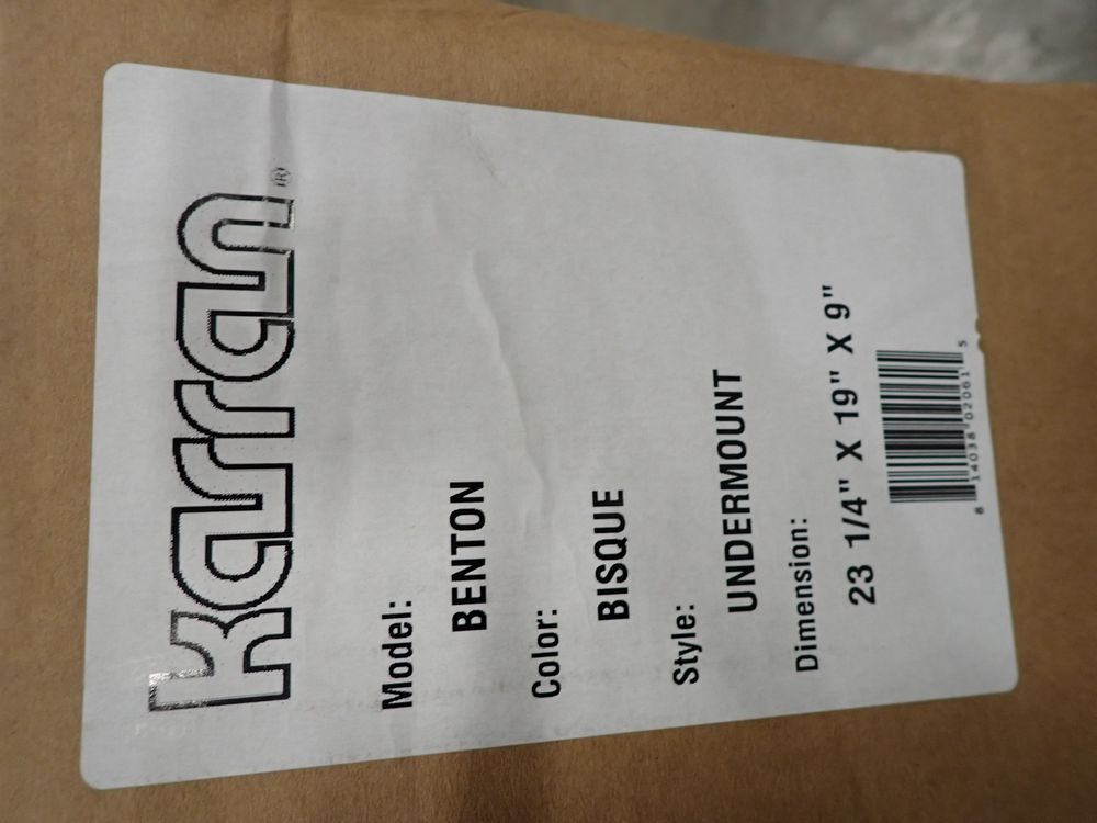 Bisque Benton Sink 23 1/4" x 19" x 9". By: Karran, Undermount. Grade: A. *Any manufacturer warranties are NOT VALID with any purchase at our Auctions unless stated otherwise.. Weight: 15. Sold by: Piece. Sold as: Quantity x Price.