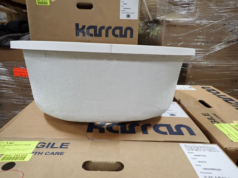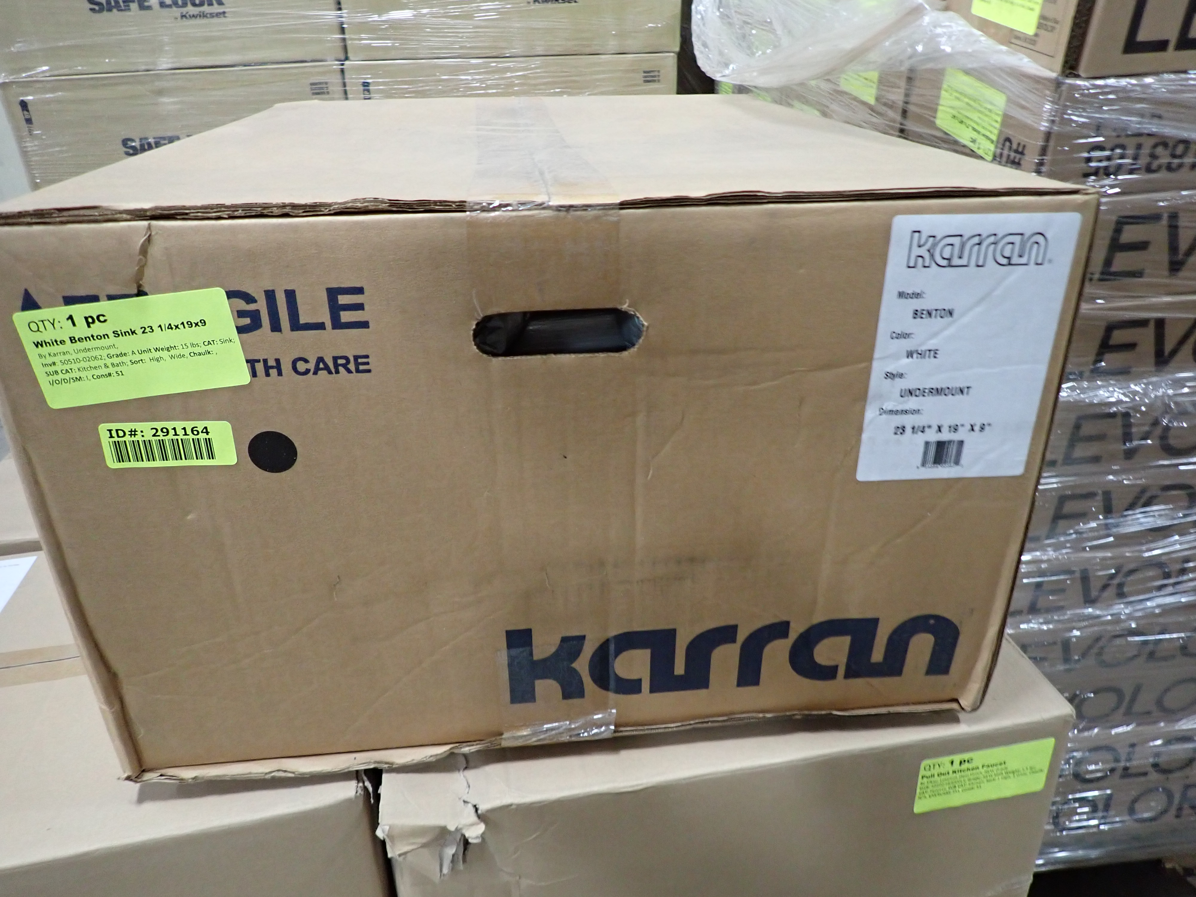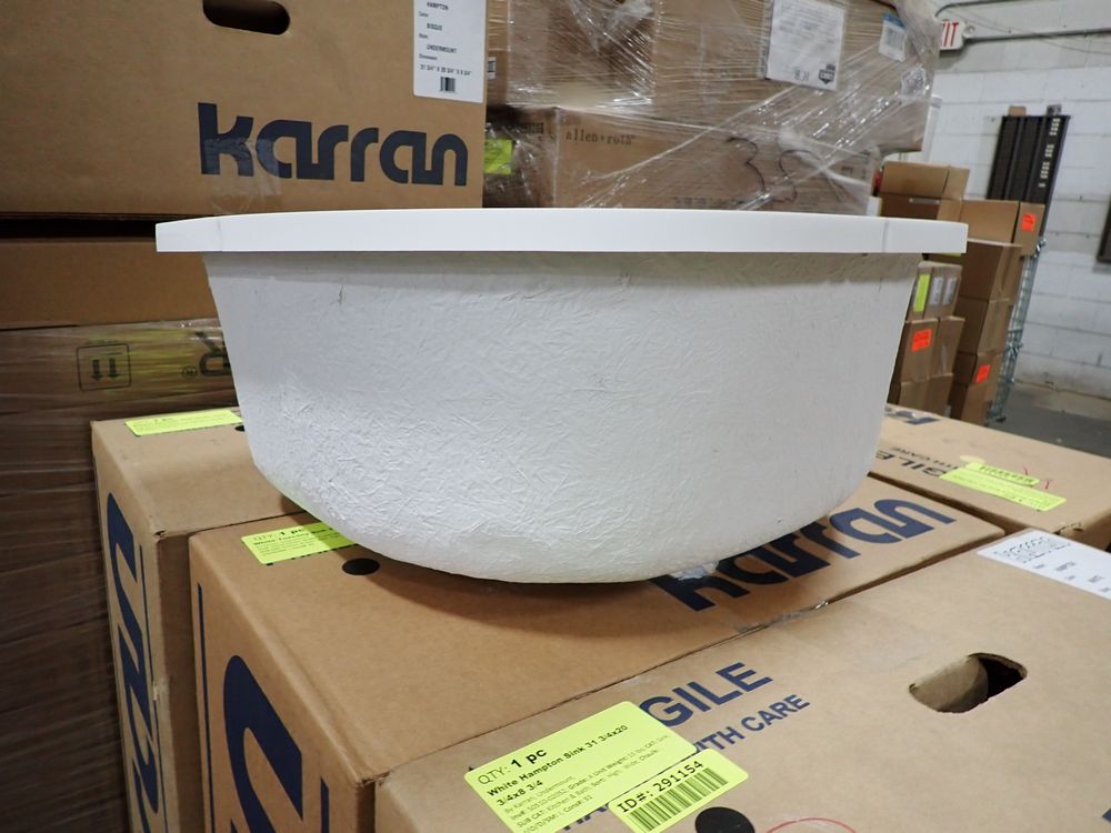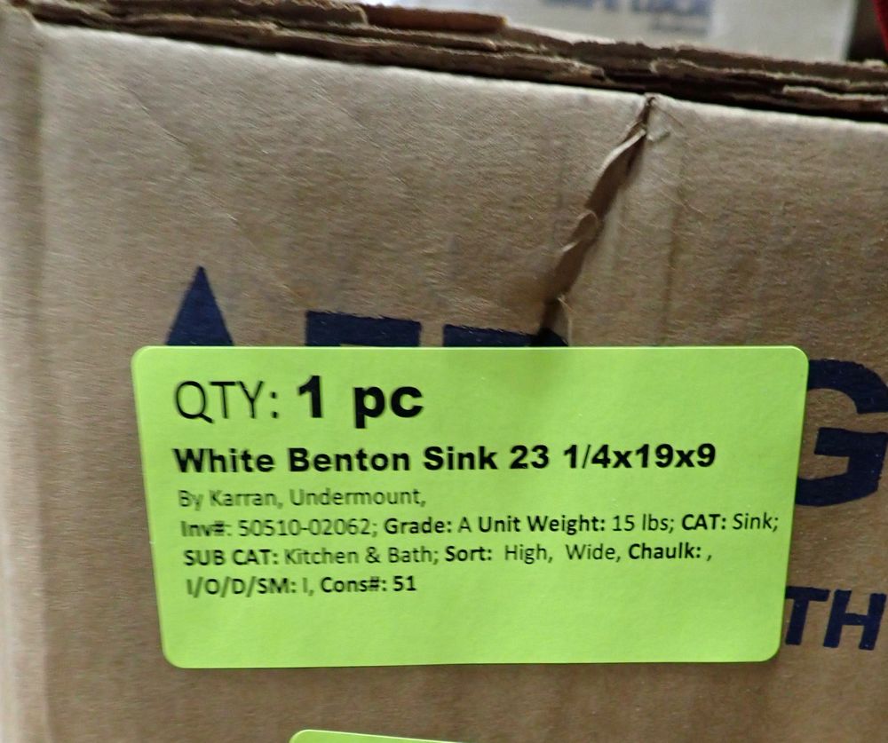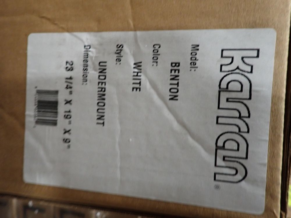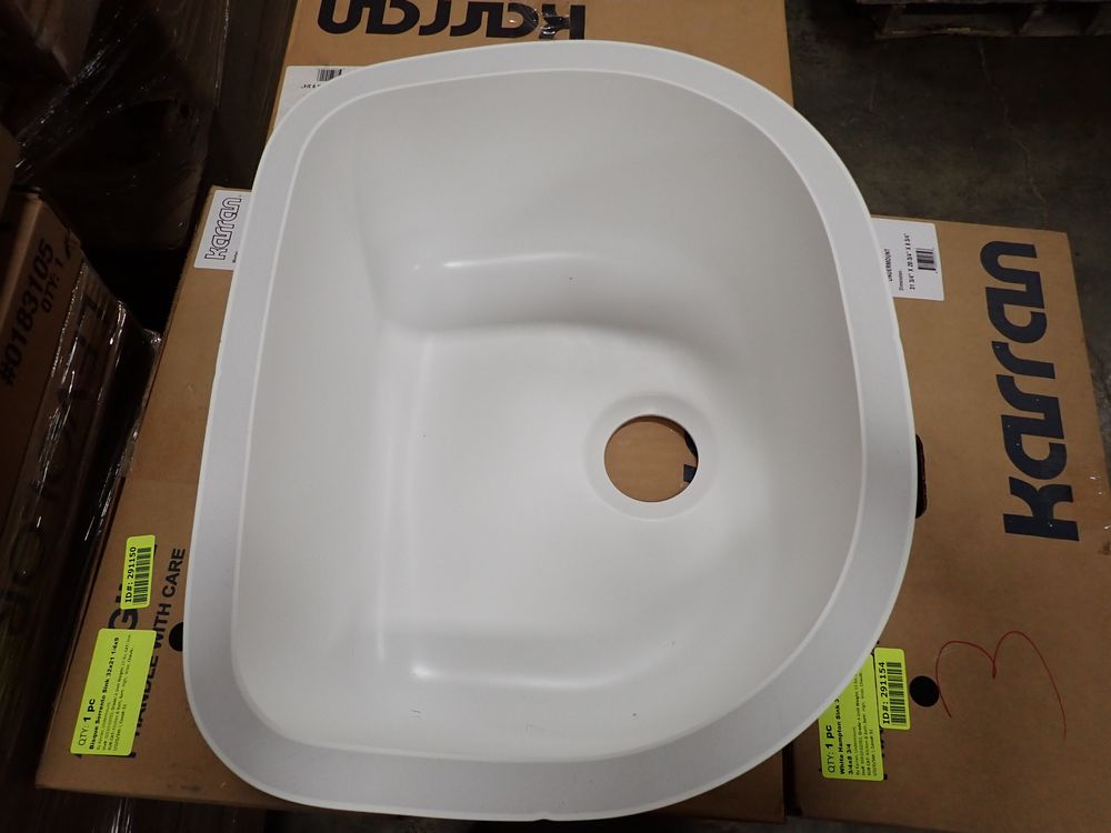 White Benton Acrylic Sink 23". By Karran, Acrylic D-Shaped Undermount. Actual Dimensions are 23 1/4"(L), 19"(W), 9"(D). Grade: A *Any manufacturer warranties are NOT VALID with any purchase at our Auctions unless stated otherwise.. Weight: 15. Sold by: Piece. Sold as: Quantity x Price.