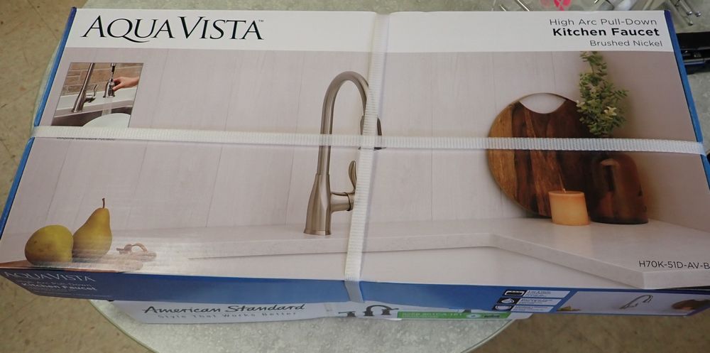 High Arc Pull-Down Kitchen Faucet, Brushed Nickel. By: Aqua Vista. Grade: A. *Any manufacturer warranties are NOT VALID with any purchase at our Auctions unless stated otherwise.. Weight: 6. Sold by: Piece. Sold as: Quantity x Price.