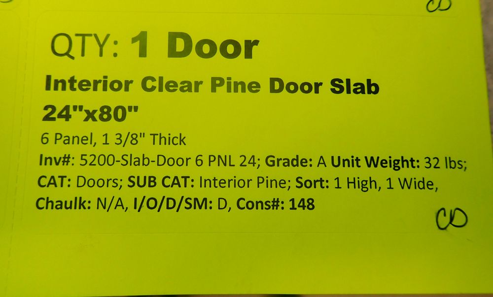 Interior Clear Pine Door Slab 24" x 80". 6 Panel, Grade: A, 24" W x 1 6/16" D x 80" D *Any manufacturer warranties are NOT VALID with any purchase at our Auctions unless stated otherwise.. Weight: X. Sold by: Piece. Sold as: Quantity x Price.