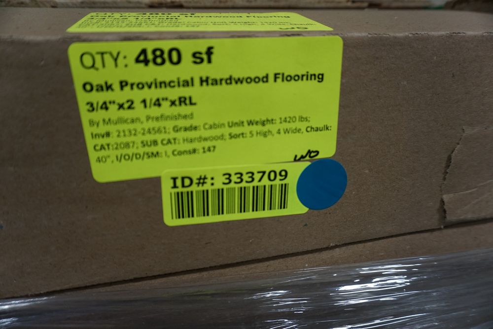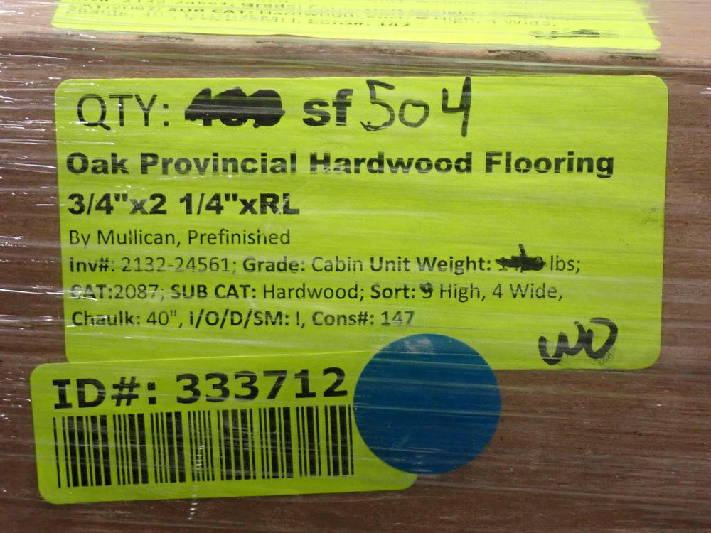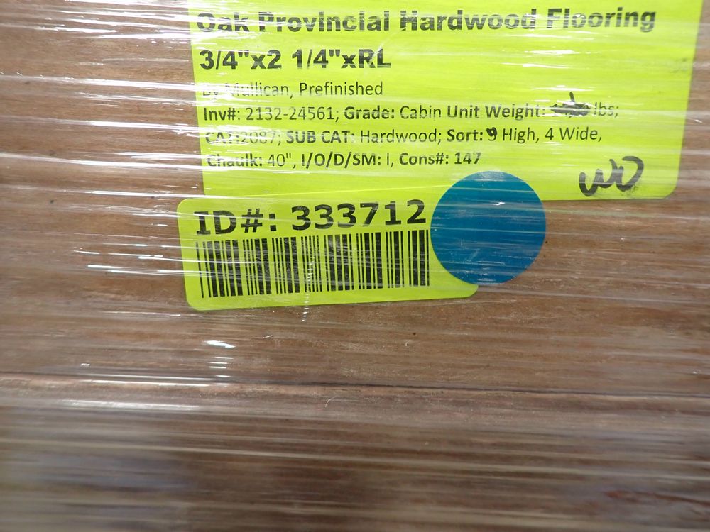 Oak Provincial Hardwood Flooring 3/4"x2 1/4"xRL. By Mullican, Prefinished. Grade: Cabin, 21 Boxes, 24 SF Per Box. *Any manufacturer warranties are NOT VALID with any purchase at our Auctions unless stated otherwise.. Weight: X. Sold by: Square Foot. Sold as: Quantity x Price.