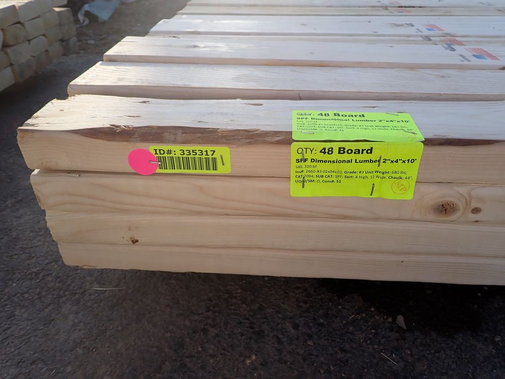 SPF Dimensional Lumber 2" x 4" x 10'. S4S, 320 bf. Grade: #3 *Any manufacturer warranties are NOT VALID with any purchase at our Auctions unless stated otherwise.. Weight: 680. Sold by: Board. Sold as: Quantity x Price.