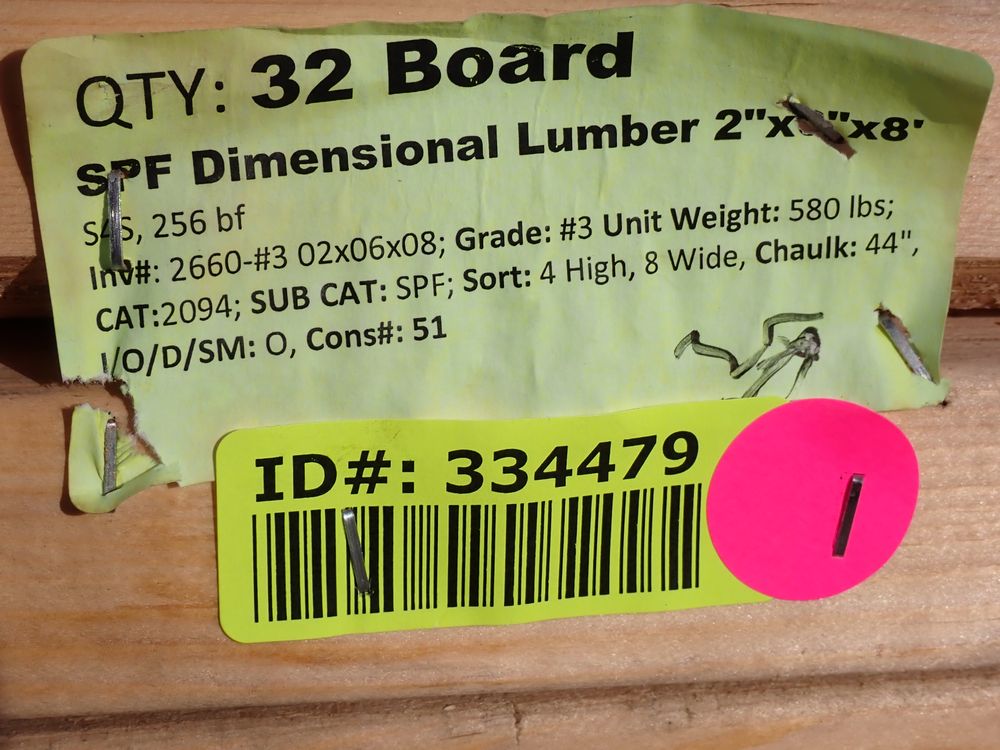 SPF Dimensional Lumber 2" x 6" x 8'. S4S, 256 bf, Grade: 3# *Any manufacturer warranties are NOT VALID with any purchase at our Auctions unless stated otherwise.. Weight: 580. Sold by: Board. Sold as: Quantity x Price.