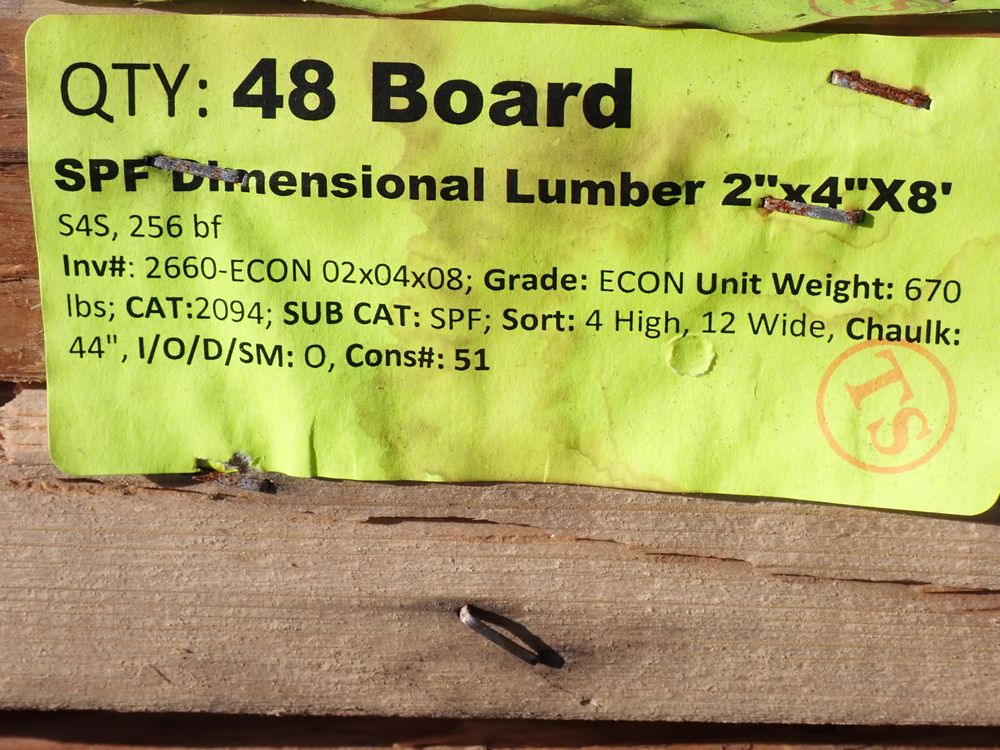 SPF Dimensional Lumber 2" x 4" x 8'. S4S 256 bf, Grade: ECON *Any manufacturer warranties are NOT VALID with any purchase at our Auctions unless stated otherwise.. Weight: 670. Sold by: Board. Sold as: Quantity x Price.