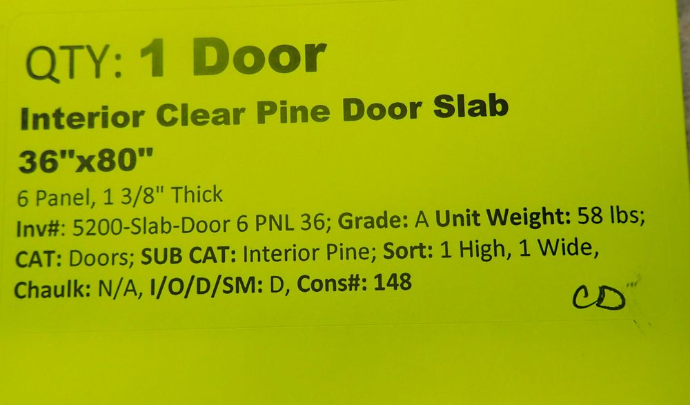 Interior Pine Door Slab 80" x 36". 6 Panel Door *Any manufacturer warranties are NOT VALID with any purchase at our Auctions unless stated otherwise.. Weight: X. Sold by: Piece. Sold as: Quantity x Price.