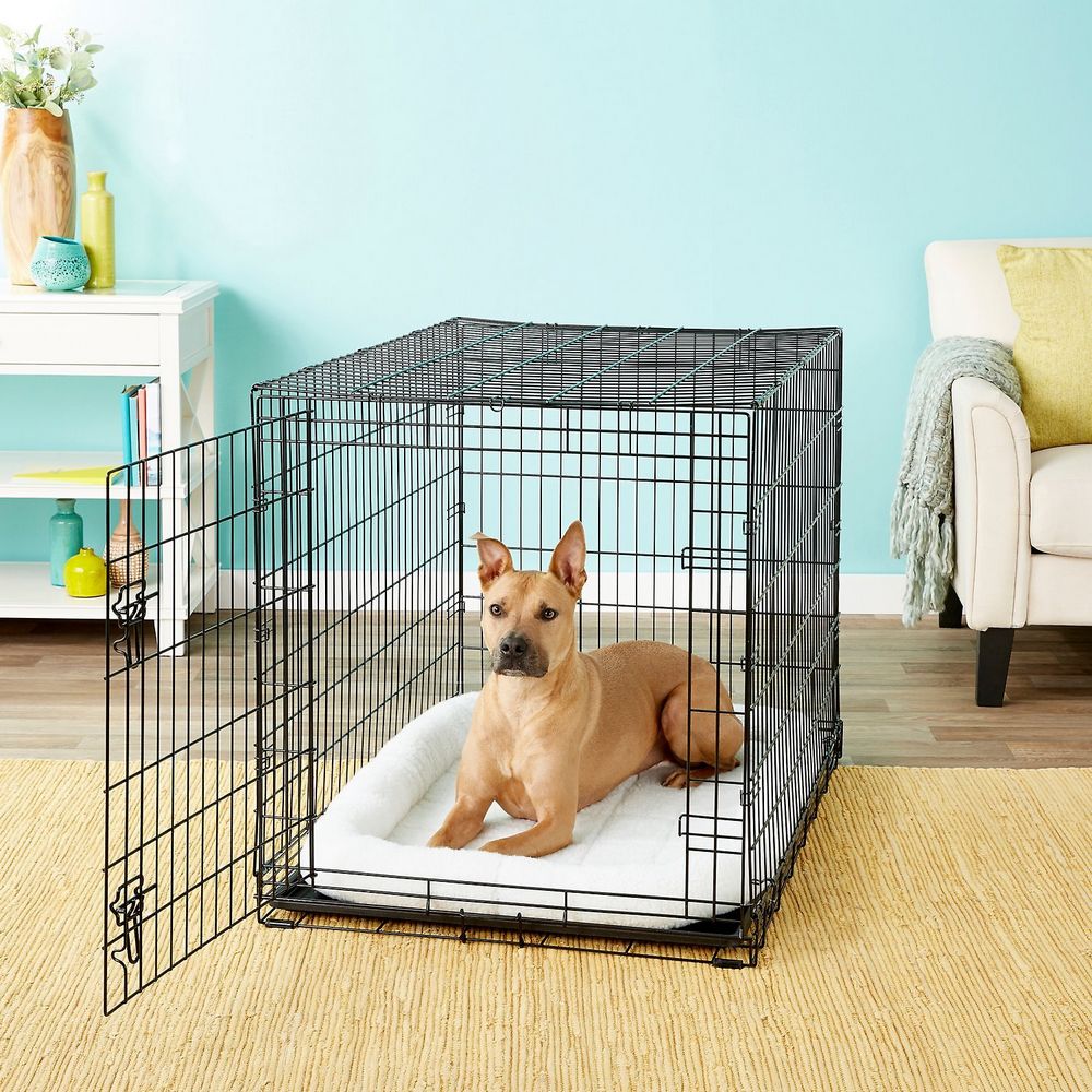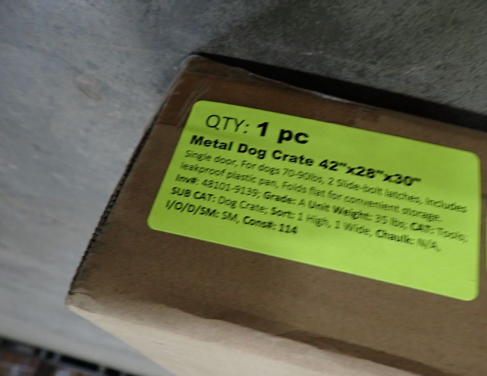Metal Dog Crate 42" x 28" x 30". Single Door, For Dogs 70-90lbs, 2 Slide-Bolt Latches, Includes Leakproof Plastic Pan, Folds Flat For Convenient Storage, Grade A *Any manufacturer warranties are NOT VALID with any purchase at our Auctions unless stated otherwise.. Weight: 40. Sold by: Piece. Sold as: Quantity x Price.