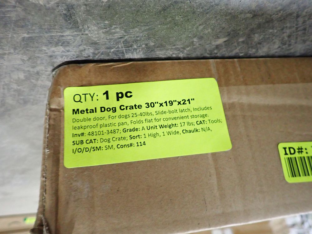 Metal Dog Crate 30" x 19" x 21". Double Door, For Dogs 25-40lbs, Slide-Bolt Latch, Includes Leakproof Plastic Pan, Folds Flat For Convenient Storage. Grade: A *Any manufacturer warranties are NOT VALID with any purchase at our Auctions unless stated otherwise.. Weight: 17. Sold by: Piece. Sold as: Quantity x Price.