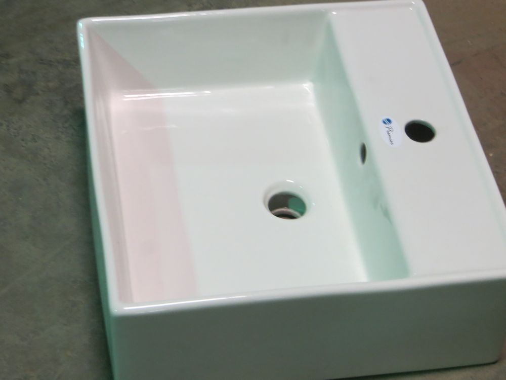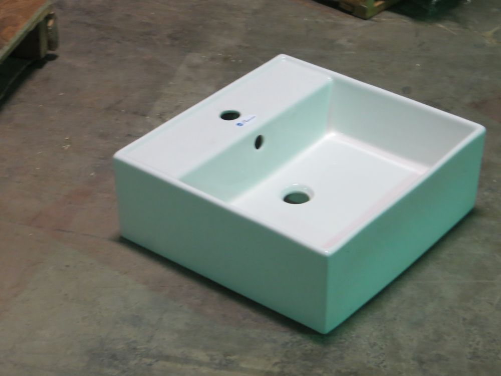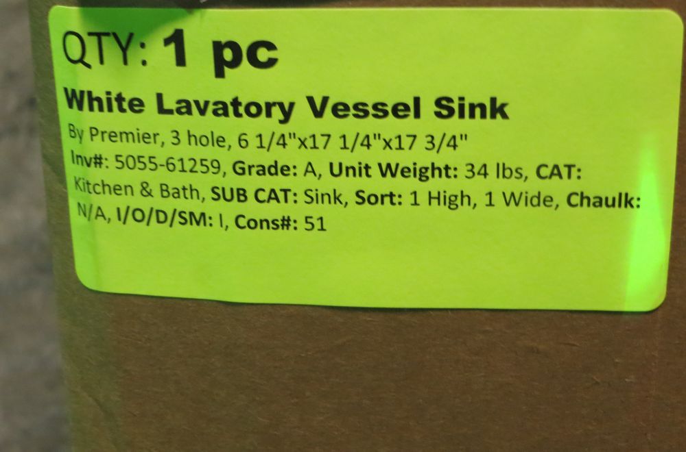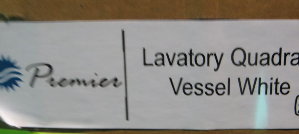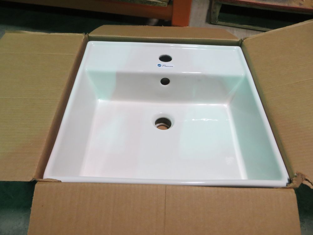 White Lavatory Vessel Sink, Quadrato. By: Premier. 3 hole, 6 1/4" x 17 1/4" x 17 3/4". Grade: A *Any manufacturer warranties are NOT VALID with any purchase at our Auctions unless stated otherwise.. Weight: 34. Sold by: Piece. Sold as: Quantity x Price.