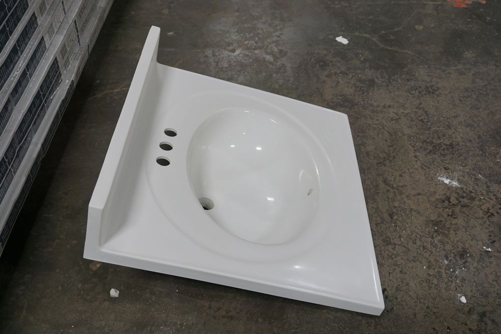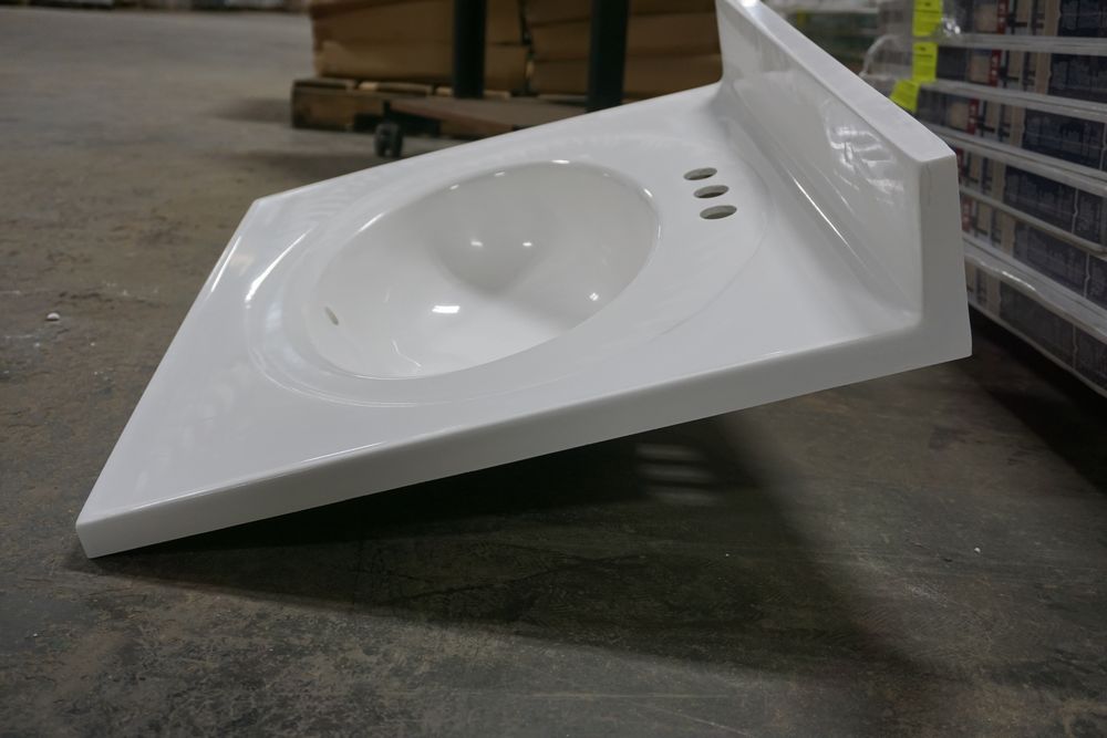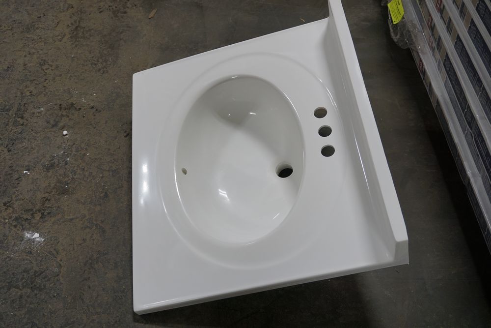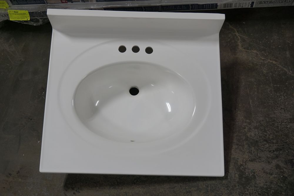 White Vanity Top Sink 25" x 10". Actual Dimensions: 25" (L) x 10" (W) x 6 1/2" (D). *Any manufacturer warranties are NOT VALID with any purchase at our Auctions unless stated otherwise.. Weight: x. Sold by: Piece. Sold as: Quantity x Price.