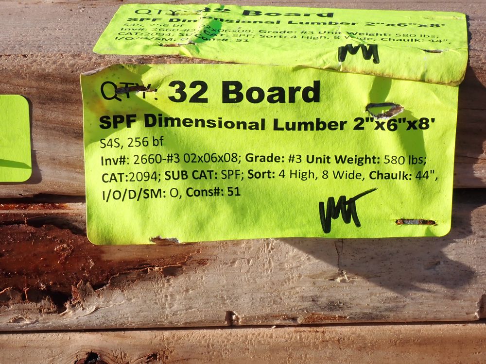 SPF Dimensional Lumber 2" x 6" x 8'. S4S, 256 bf. Grade: #3 *Any manufacturer warranties are NOT VALID with any purchase at our Auctions unless stated otherwise.. Weight: 580. Sold by: Board. Sold as: Quantity x Price.