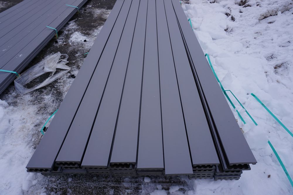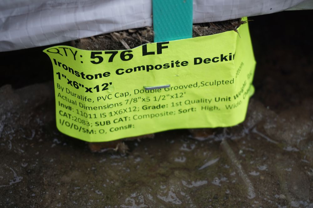 Irontone Composition Decking 1"x 6" x 12'. By Duralife, PVC Cap, Double Grooved, Scalloped Bottom, Actual Dimensions 7/8" x 5 1/2" x 16', 48 Pieces, Grade: 1st Quality *Any manufacturer warranties are NOT VALID with any purchase at our Auctions unless stated otherwise.. Weight: x. Sold by: Linear Foot. Sold as: Quantity x Price.