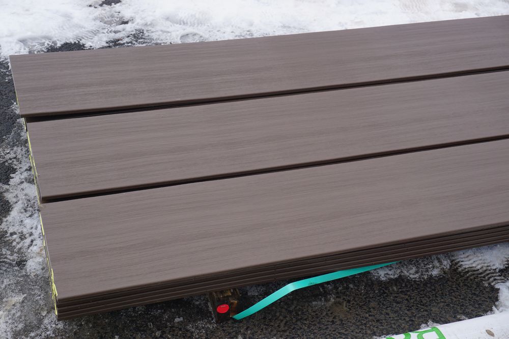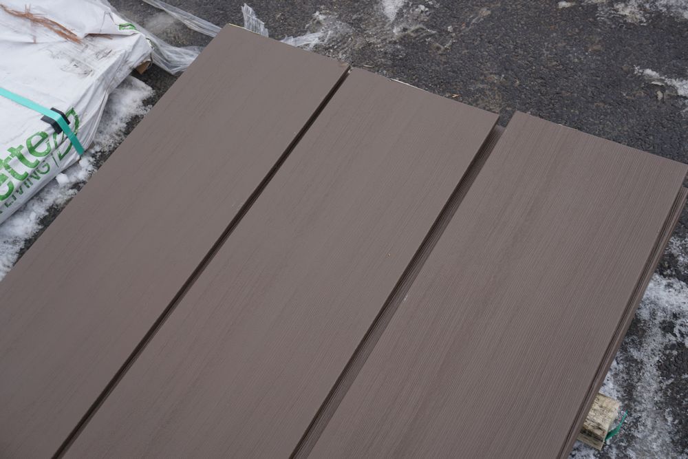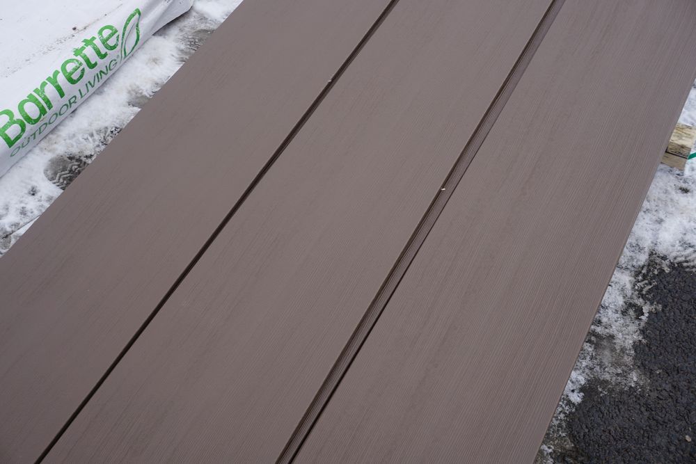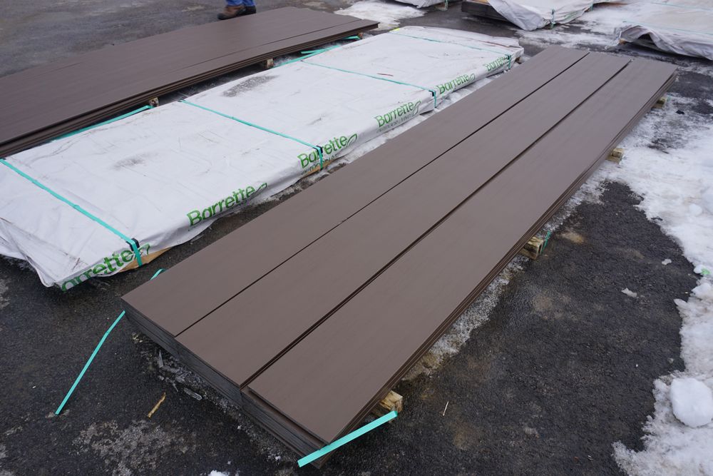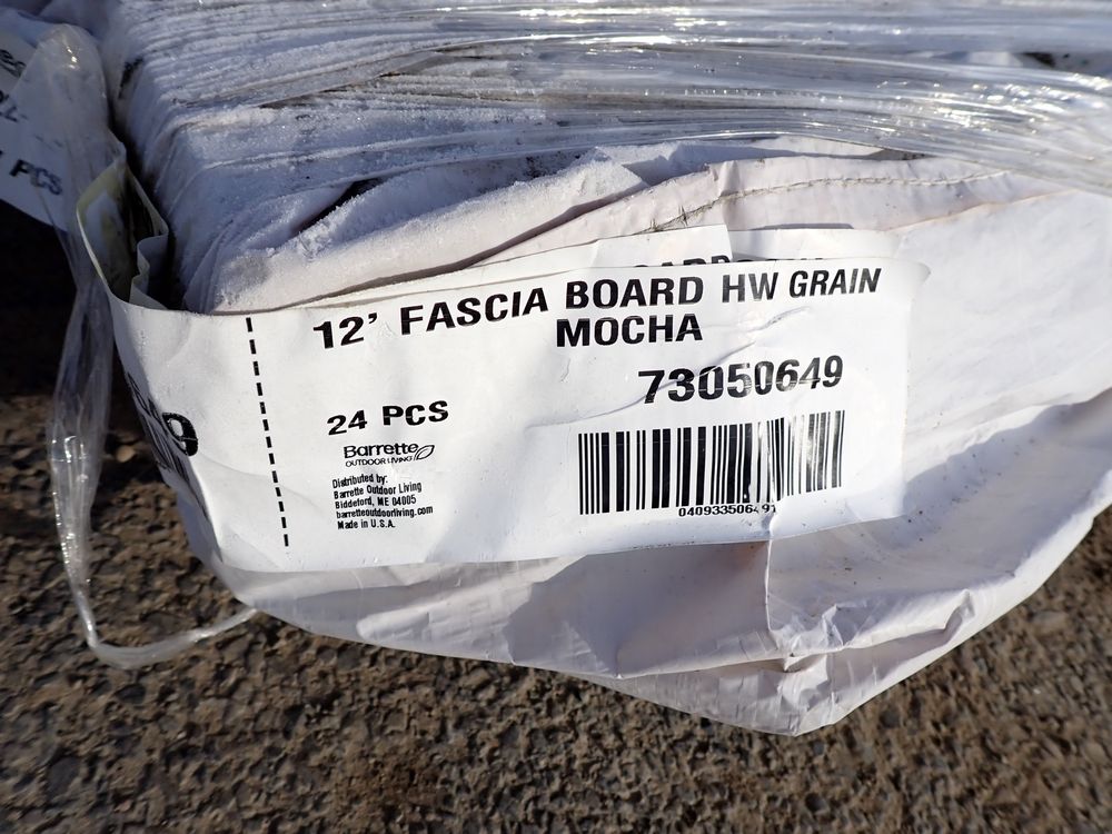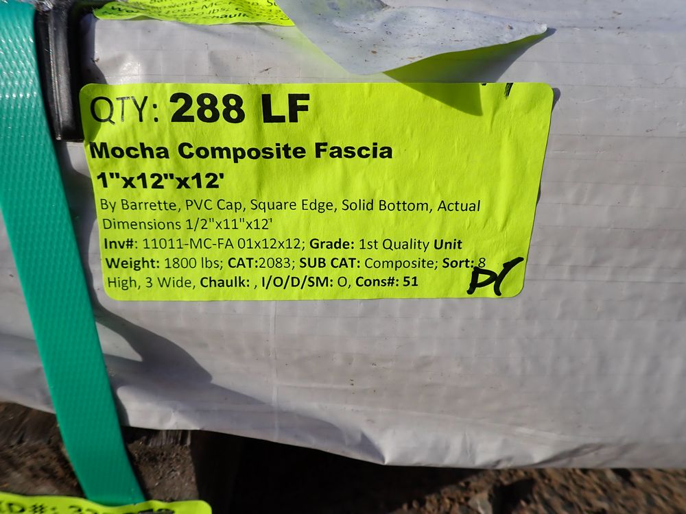 Mocha Composite Fascia 1" x 12" x 12'. By Barrette, PVC Cap, Square Edge, Solid Bottom, Actual Dimensions 1/2" x 11" x 12'. Grade 1st Quality Unit. 24 Pieces *Any manufacturer warranties are NOT VALID with any purchase at our Auctions unless stated otherwise.. Weight: 1800 pounds. Sold by: Linear Foot. Sold as: Quantity x Price.