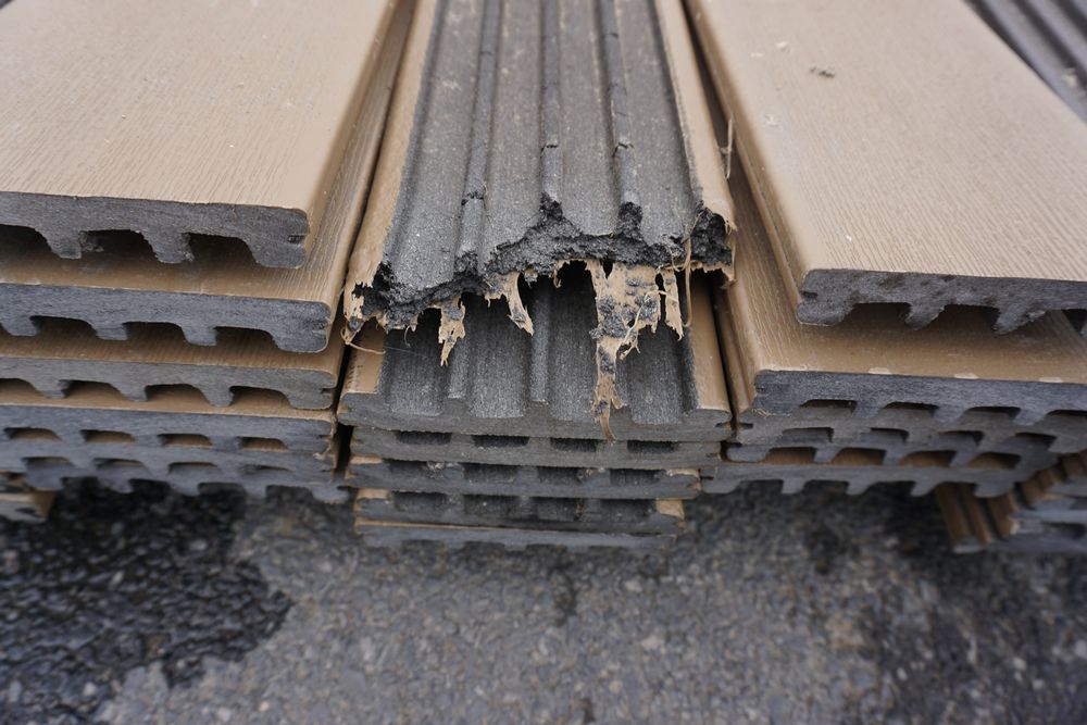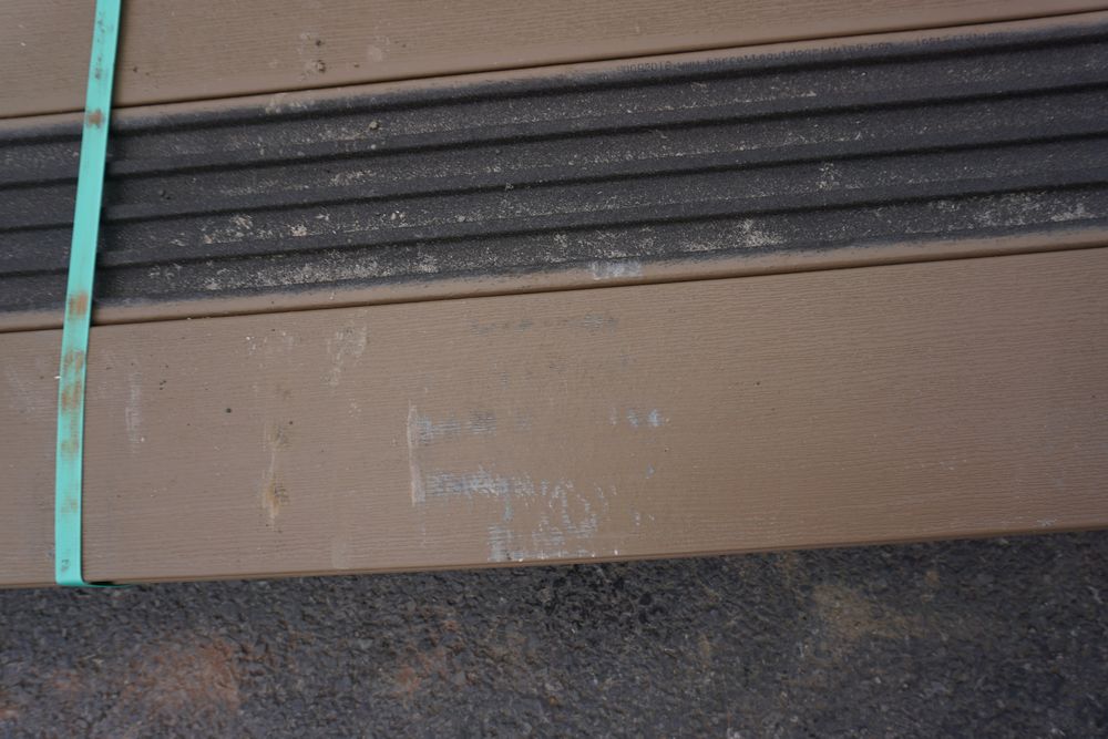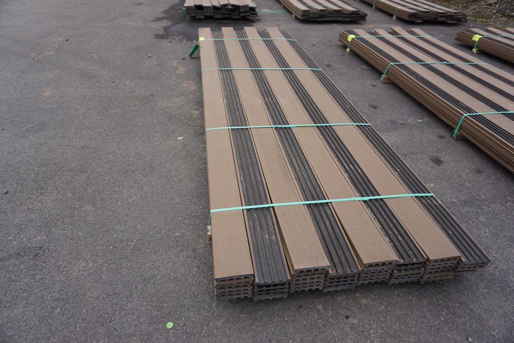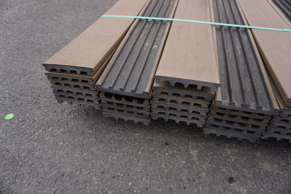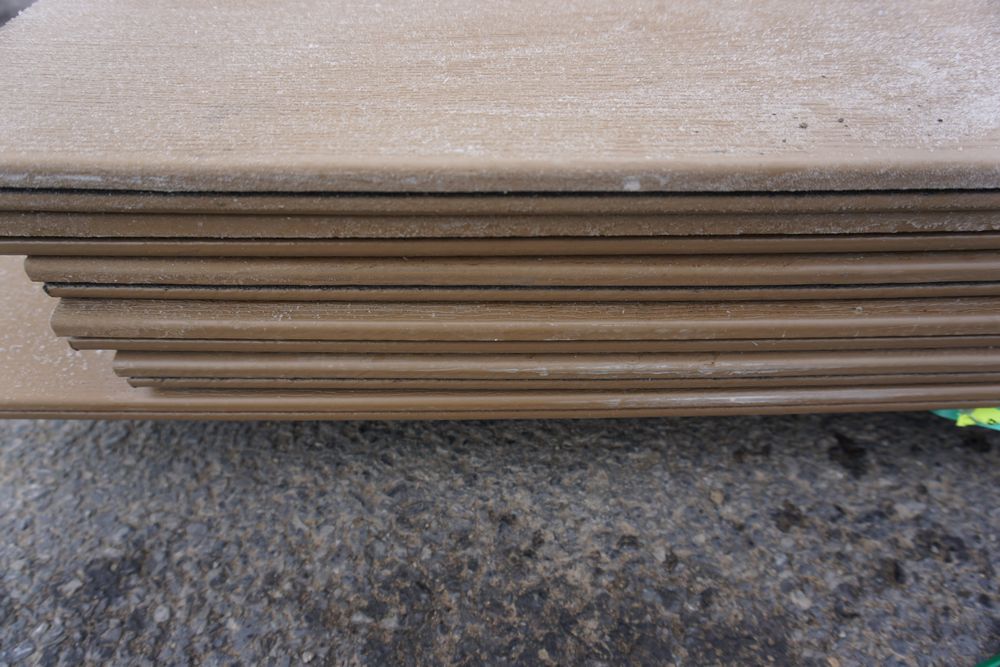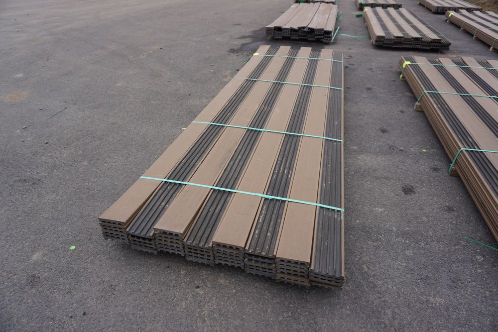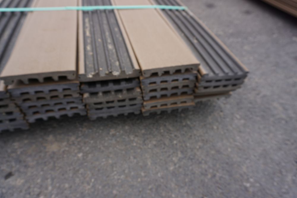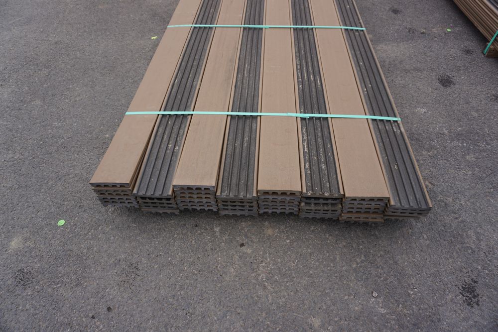 Veranda Brown Composite Decking 1" x 6" x 12'. PVC Cap, Actual Dimensions 1" x 5 1/2" x 12'. Scalloped and Grooved Edges. 48 Boards. Grade: B. *1 board is damaged on end and another has minor imperfections - please pay close attention to photos. *Any manufacturer warranties are NOT VALID with any purchase at our Auctions unless stated otherwise.. Weight: 1200. Sold by: Linear Foot. Sold as: Quantity x Price.