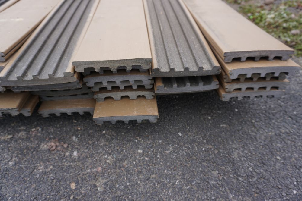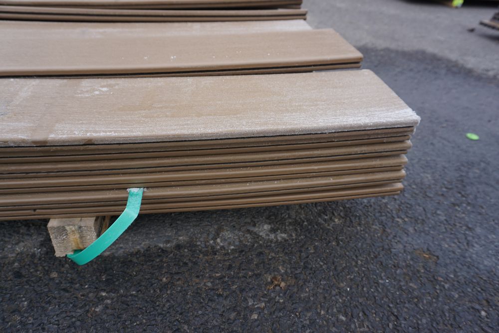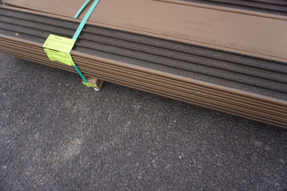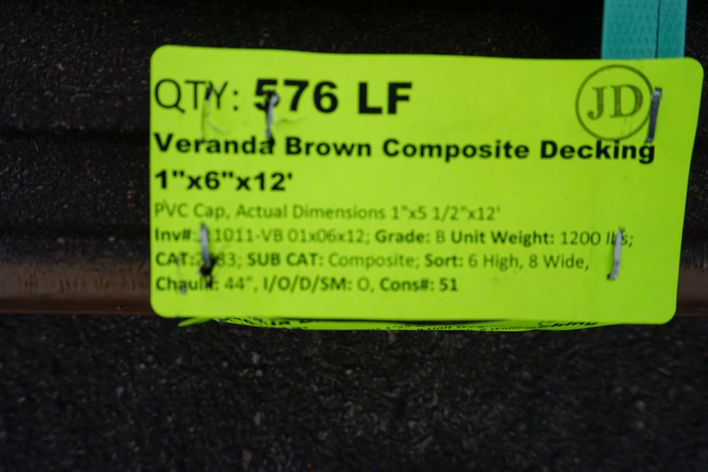 Veranda Brown Composite Decking 1" x 6" x 12' *See Description*. PVC Cap, Actual Dimensions 1" x 5 1/2" x 12'. Scalloped and Grooved Edges. 48 Boards. Grade: B. *A few boards have minor imperfections - please pay close attention to photos. *Any manufacturer warranties are NOT VALID with any purchase at our Auctions unless stated otherwise.. Weight: 1200. Sold by: Linear Foot. Sold as: Quantity x Price.