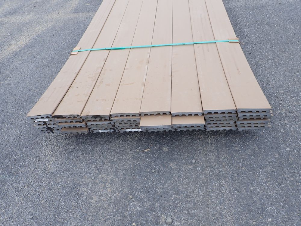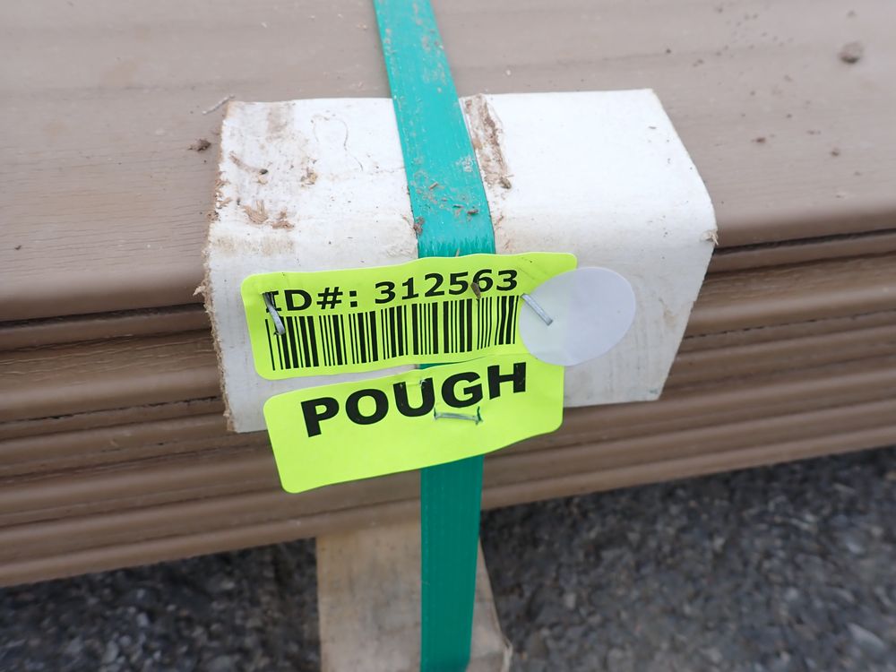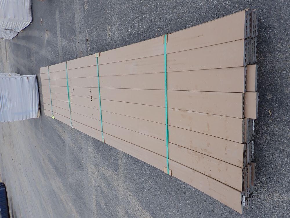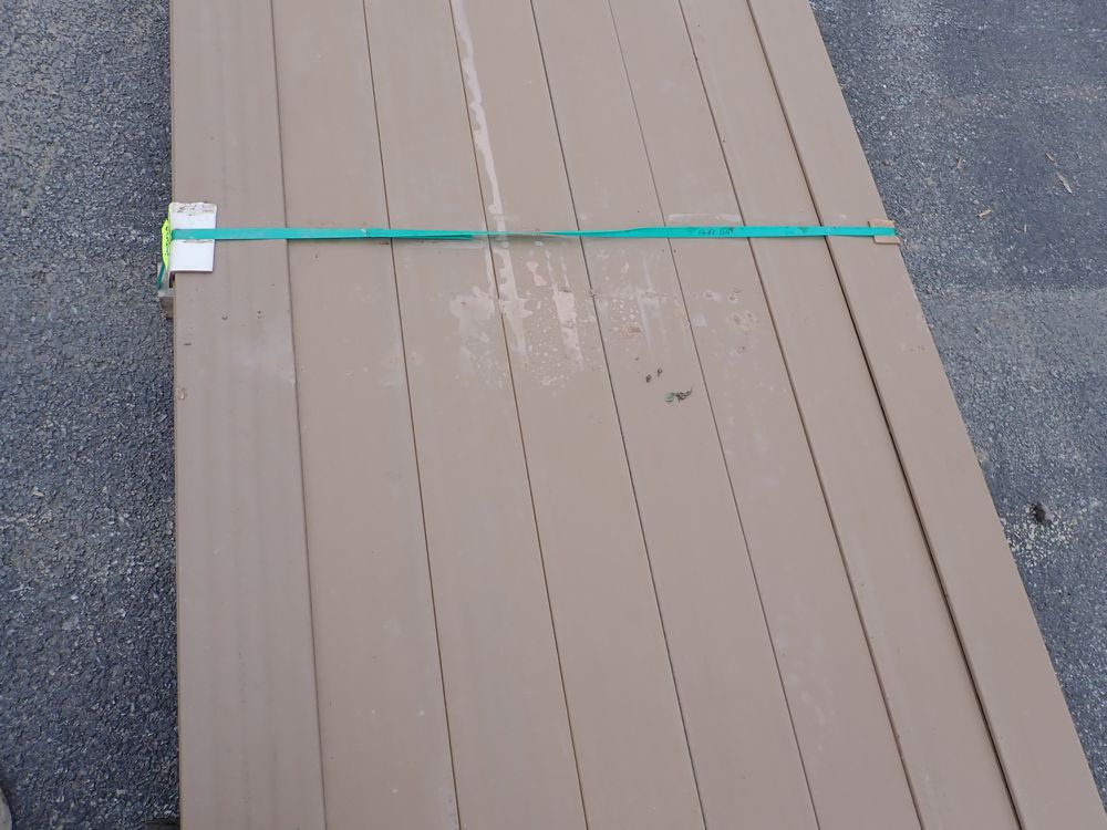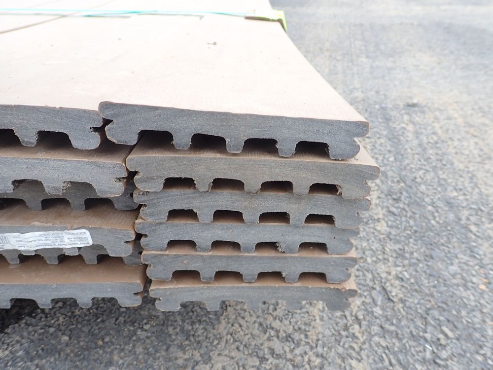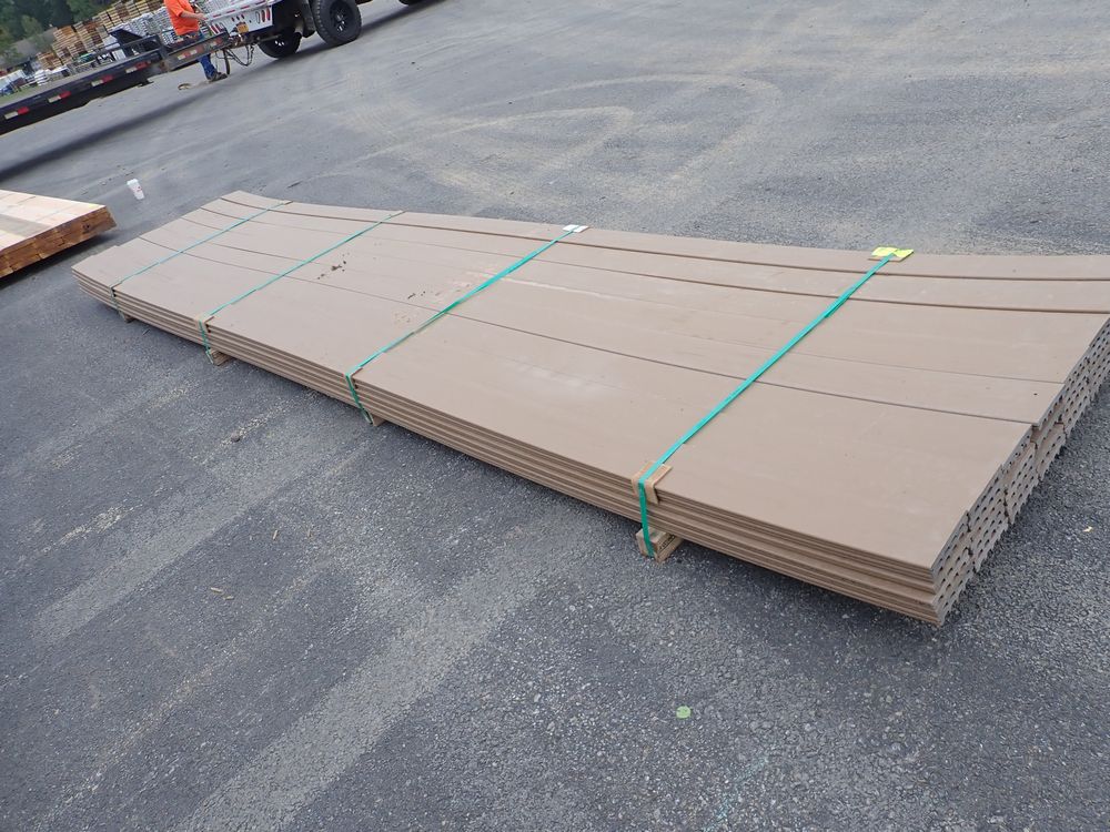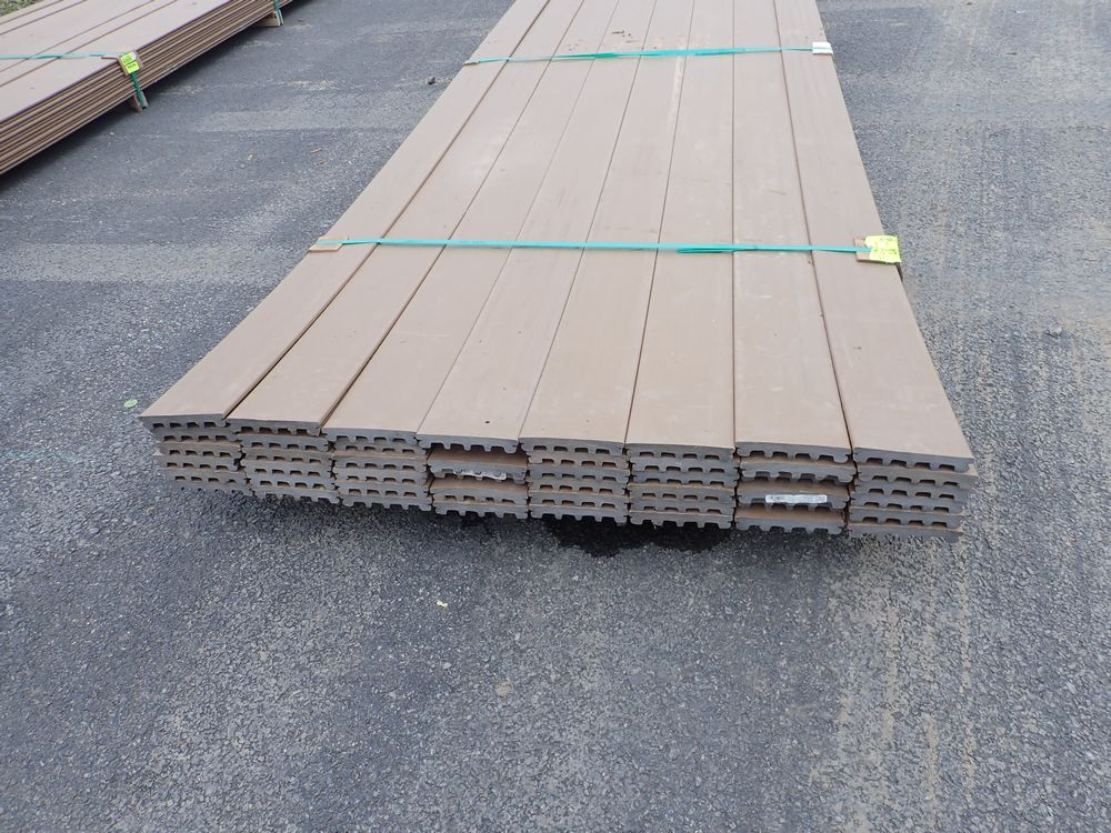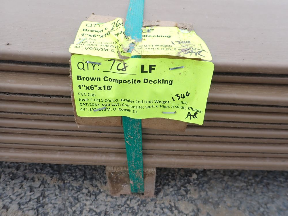 Brown Composite Decking 1" x 6" x 16'. PVC Cap. 48 Boards, Scalloped Ends. Grade: 2nd. 48 Pieces *Any manufacturer warranties are NOT VALID with any purchase at our Auctions unless stated otherwise.. Weight: 1306. Sold by: Linear Foot. Sold as: Quantity x Price.
