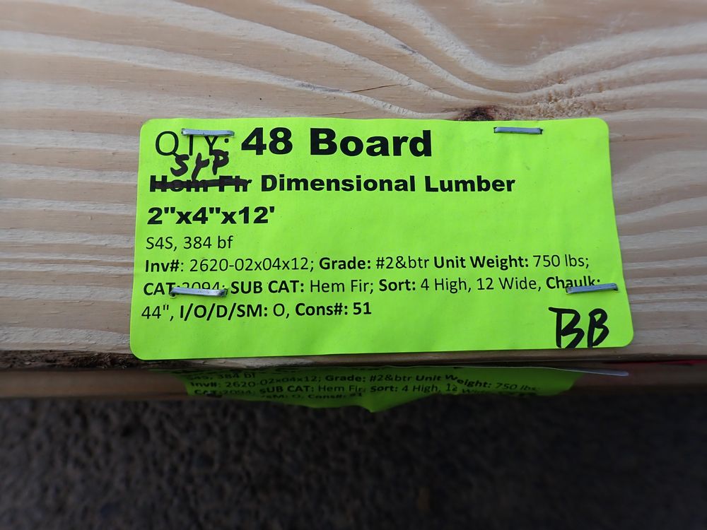 Southern Yellow Pine Dimensional Lumber 2" x 4" x 12'. S4S, Grade: #2&btr *Any manufacturer warranties are NOT VALID with any purchase at our Auctions unless stated otherwise.. Weight: 750. Sold by: Board. Sold as: Quantity x Price.