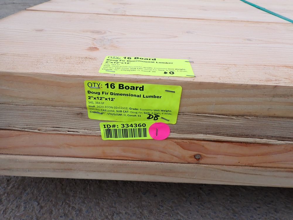 Doug Fir Dimensional Lumber 2"x12"x12'. S4S, 384 bf. Grade Economy. *Any manufacturer warranties are NOT VALID with any purchase at our Auctions unless stated otherwise.. Weight: 990 lbs. Sold by: Board. Sold as: Quantity x Price.