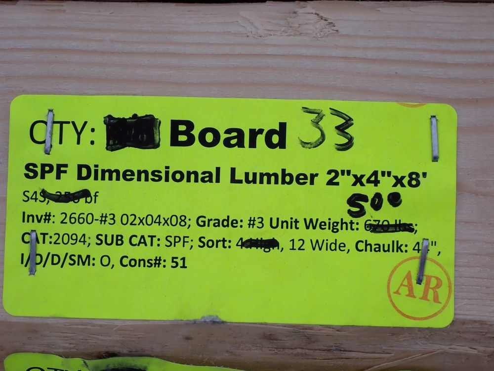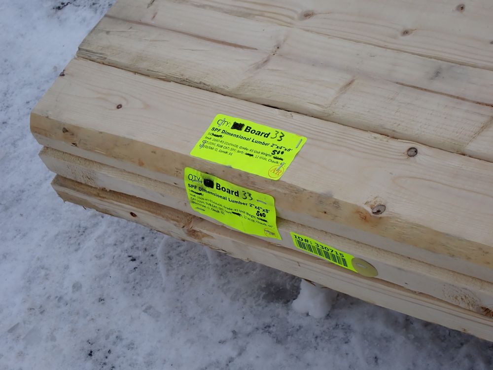 SPF Dimensional Lumber 2" x 4" x 8'. S4S, 256 bf. Grade: #3. *Any manufacturer warranties are NOT VALID with any purchase at our Auctions unless stated otherwise.. Weight: 500. Sold by: Board. Sold as: Quantity x Price.