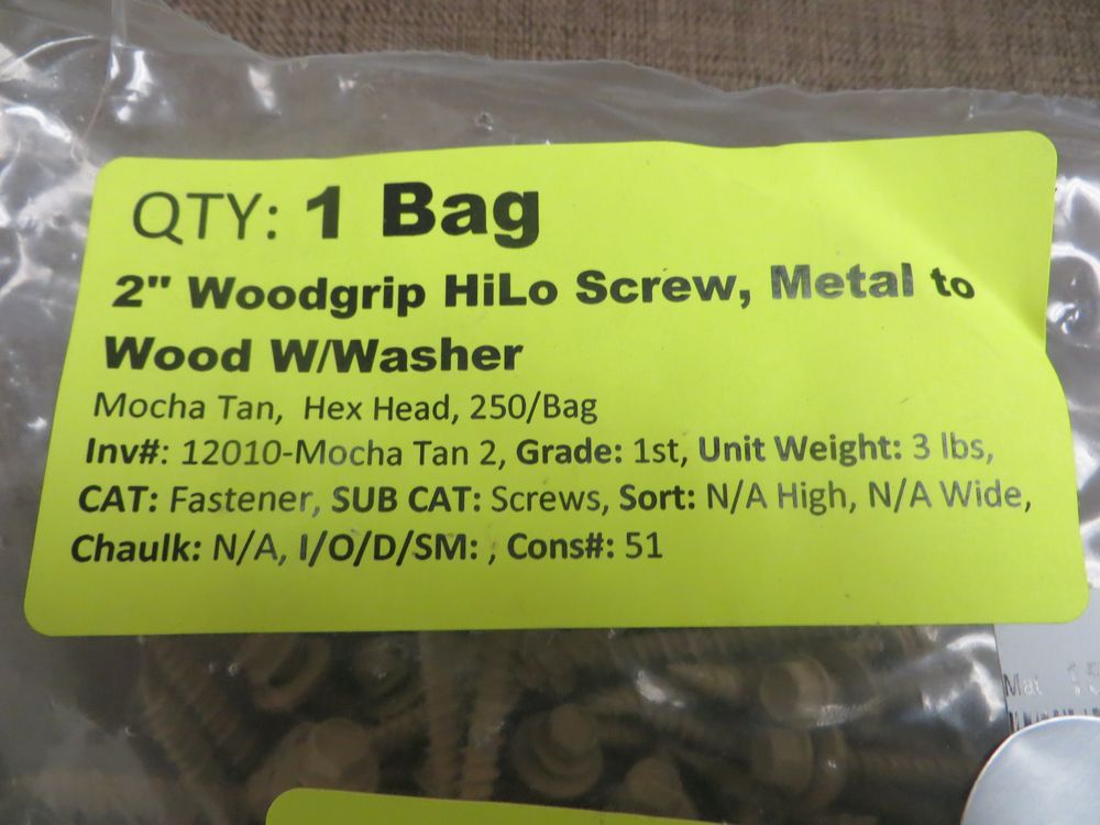 2" Woodgrip HiLo Screw Metal To Wood, With Washers. Mocha Tan, Hex Head, 250 Screws Per Bag, Grade 1st *Any manufacturer warranties are NOT VALID with any purchase at our Auctions unless stated otherwise.. Weight: 3. Sold by: Piece. Sold as: Quantity x Price.
