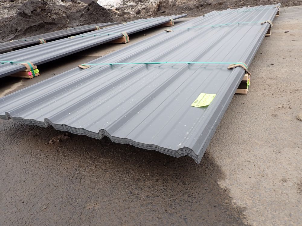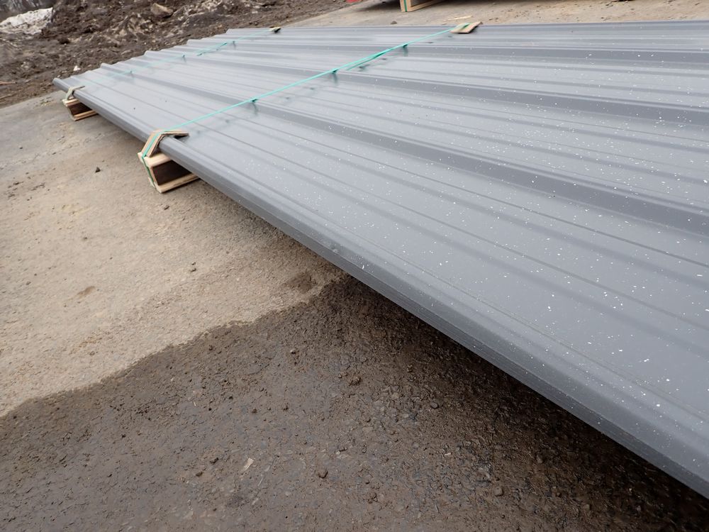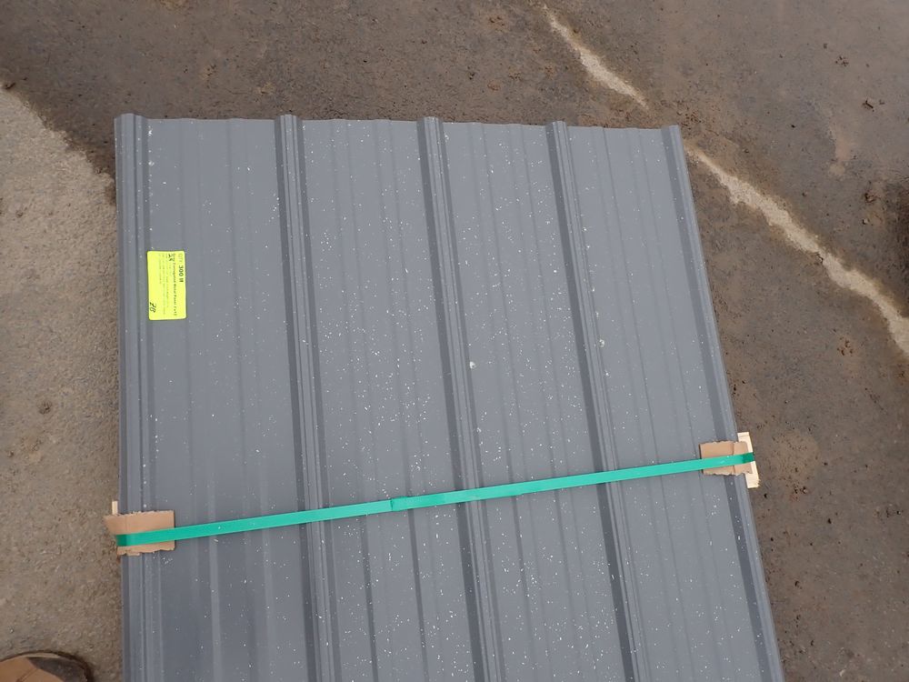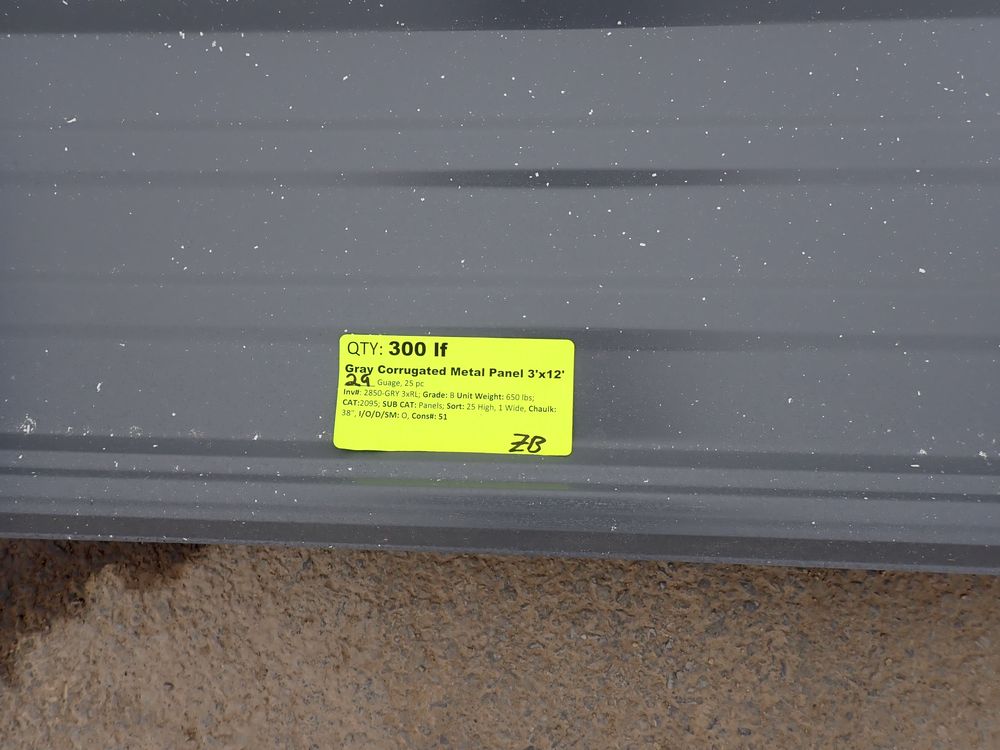 Gray Corrugated Metal Panel 3'x12'. 29 Guage, 25 Piece. Grade: B *Any manufacturer warranties are NOT VALID with any purchase at our Auctions unless stated otherwise.. Weight: 650 lbs.. Sold by: Linear Foot. Sold as: Quantity x Price.
