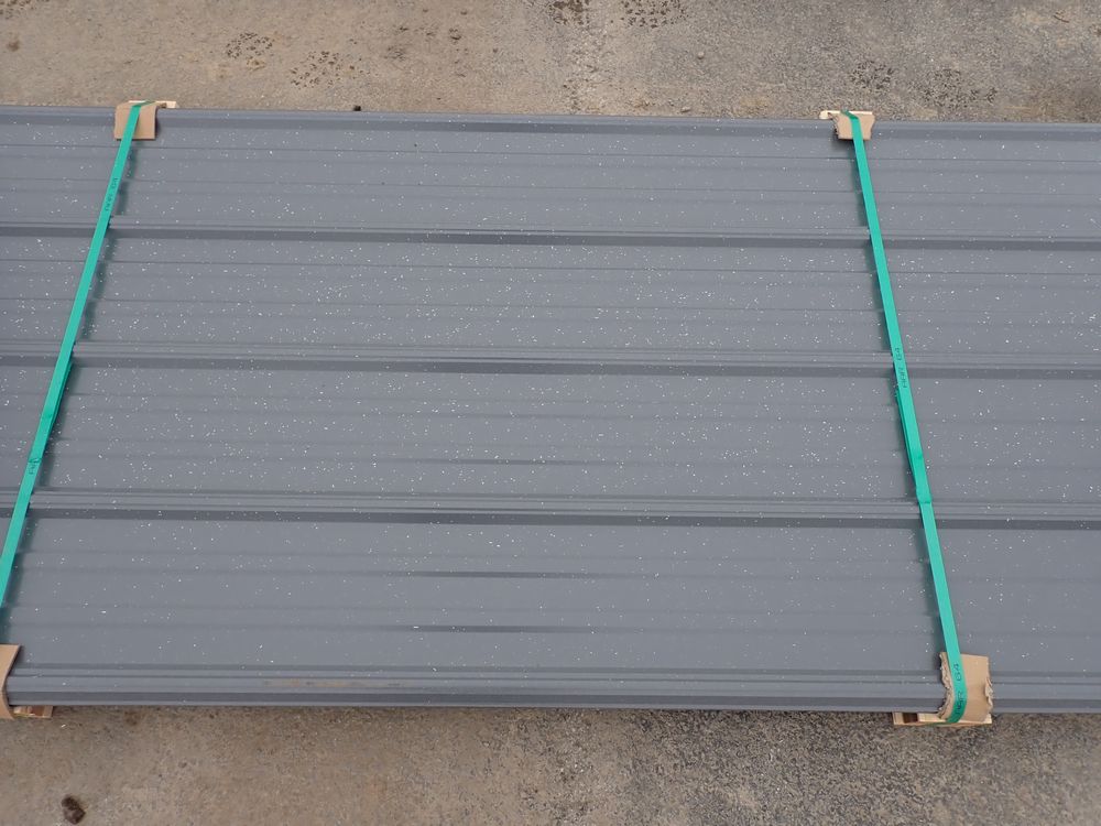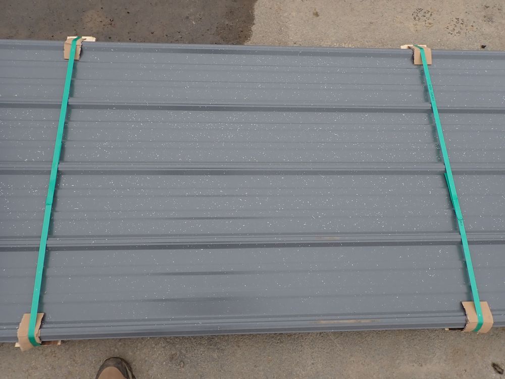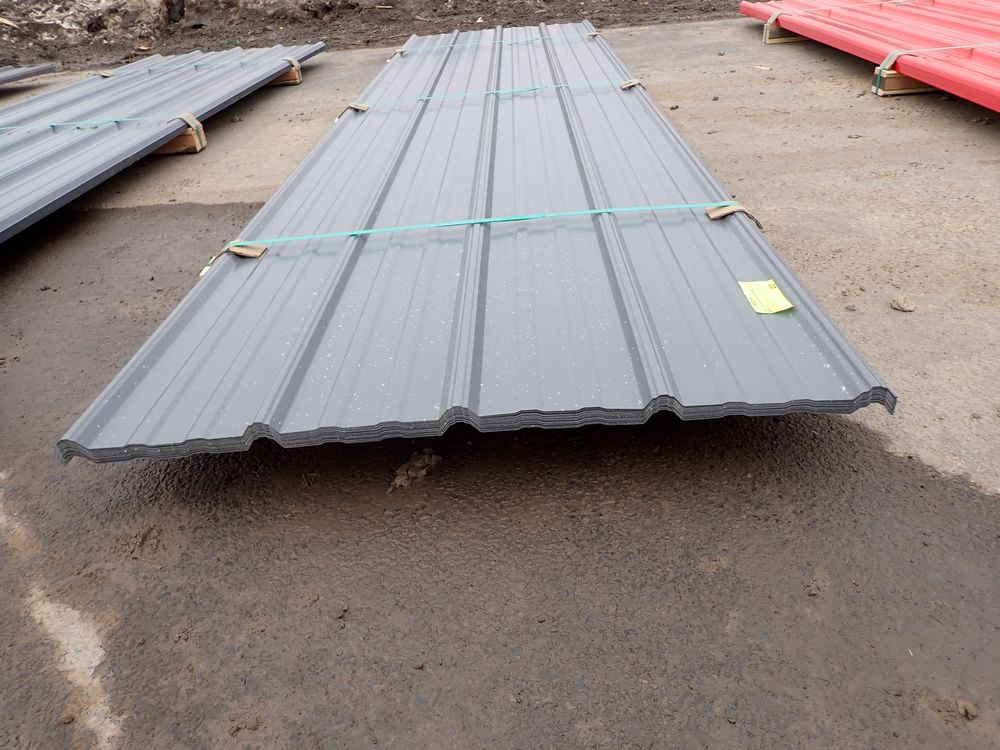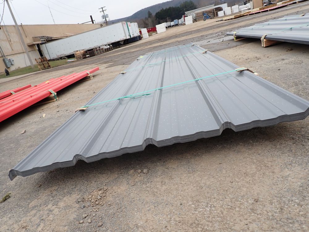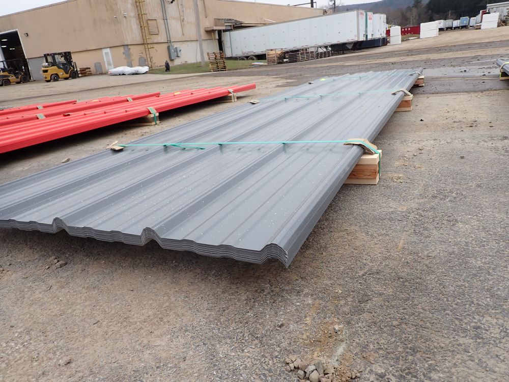 Gray Corrugated Metal Panel 3'x12'. 29 Guage, 25 Piece. Grade: B *Any manufacturer warranties are NOT VALID with any purchase at our Auctions unless stated otherwise.. Weight: 650 lbs.. Sold by: Linear Foot. Sold as: Quantity x Price.