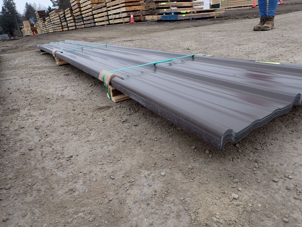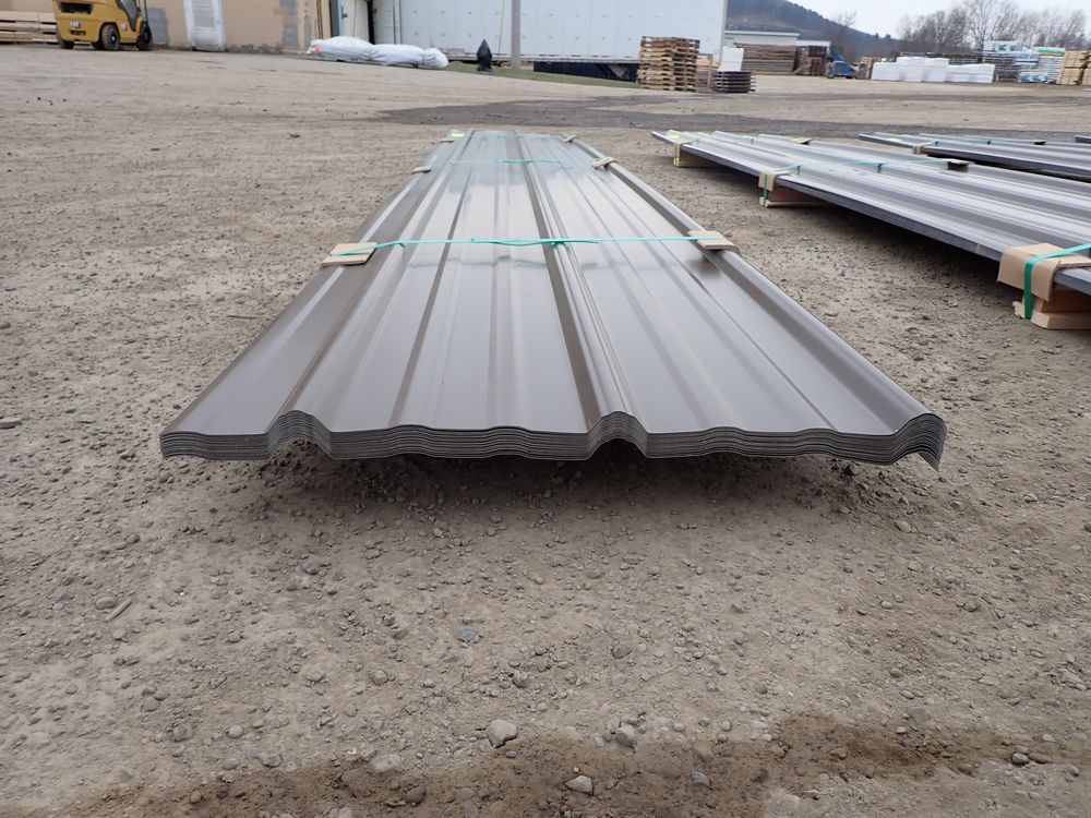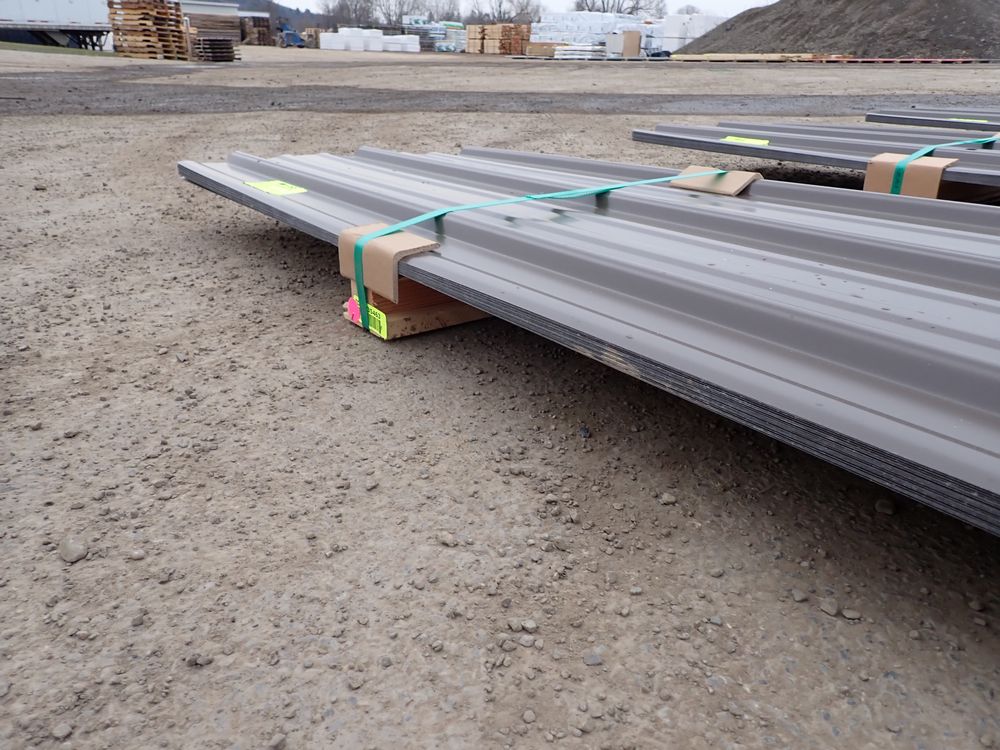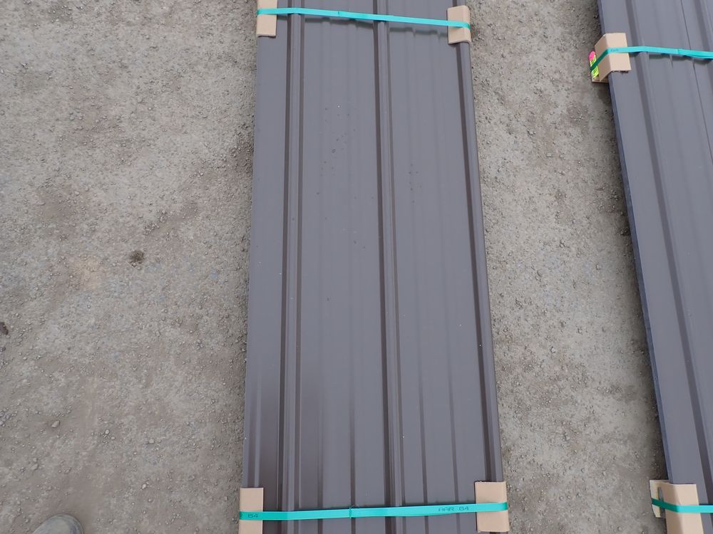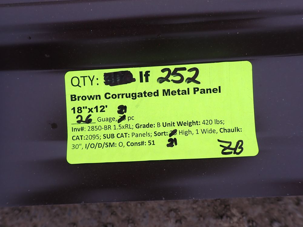 Brown Corrugated Metal Panel 18"x12'. 26 Guage, 21 Piece. Grade: B *Any manufacturer warranties are NOT VALID with any purchase at our Auctions unless stated otherwise.. Weight: X. Sold by: Linear Foot. Sold as: Quantity x Price.