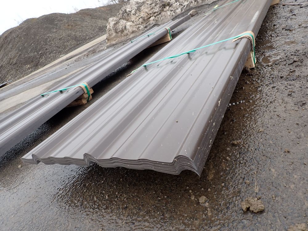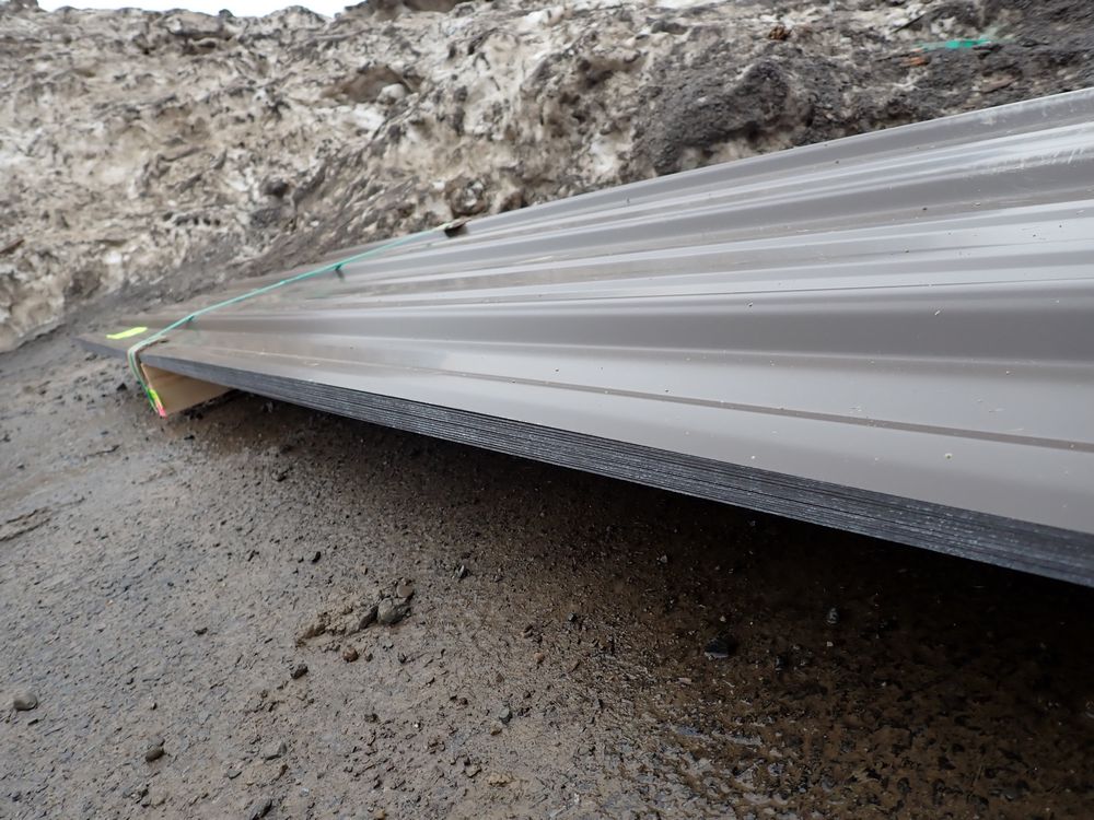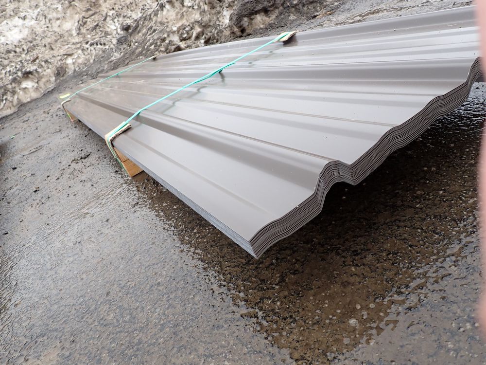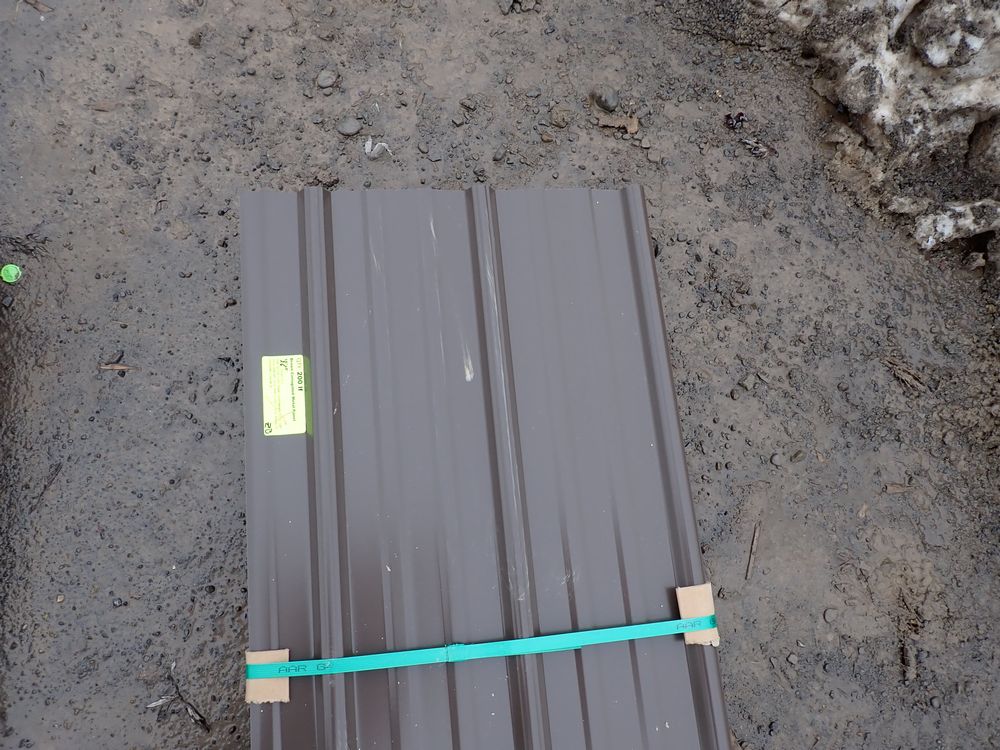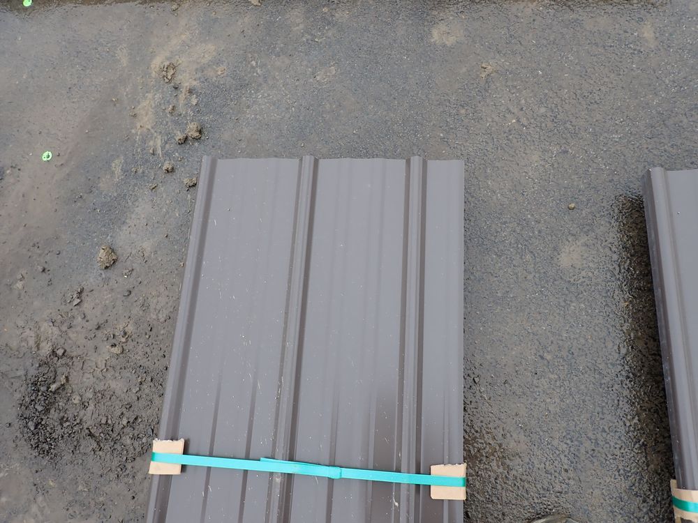 Brown Corrugated Metal Panel 18"x8'. 26 Guage, 25 Piece. Grade: B *Any manufacturer warranties are NOT VALID with any purchase at our Auctions unless stated otherwise.. Weight: 390 lbs.. Sold by: Linear Foot. Sold as: Quantity x Price.