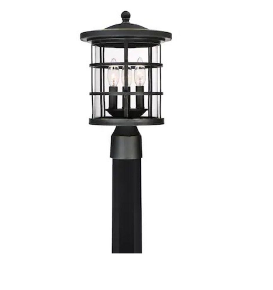 Asheville 3-Light Post Lantern 9.5" x 9.5" x 15". Quoizel Lighting, Dark Oil-Rubbed Bronze Finish, Clear Glass, Dimmable, Bulbs Not Included; Grade A *Any manufacturer warranties are NOT VALID with any purchase at our Auctions unless stated otherwise.. Weight: 6. Sold by: Piece. Sold as: Quantity x Price.