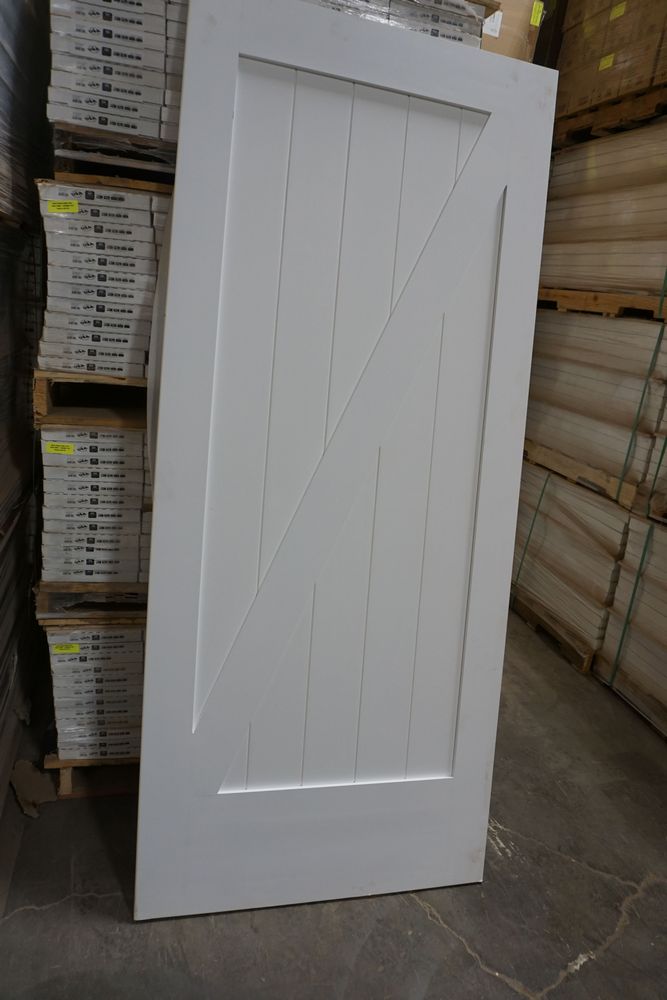 Interior, Primed Barn Door, 36"x84" Z Panel *See Description*. Has a Kerf, Barn Door Hardware is not included. Grade: 1st Quality *Please pay attention to photos, Door has slight fork damage.* *Any manufacturer warranties are NOT VALID with any purchase at our Auctions unless stated otherwise.. Weight: X. Sold by: Door. Sold as: Quantity x Price.