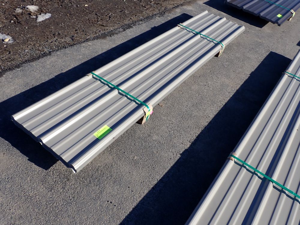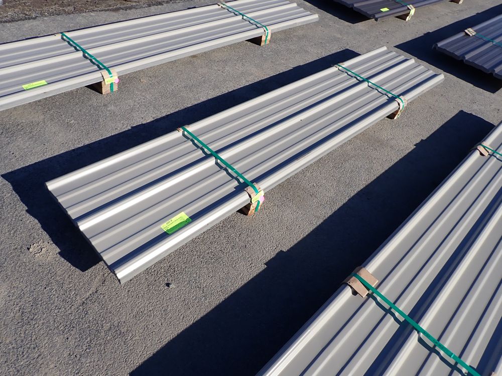 Beige Corrugated Metal 18" x 8'. 26 Gauge, 25 pc. Grade: B. *Any manufacturer warranties are NOT VALID with any purchase at our Auctions unless stated otherwise.. Weight: 580. Sold by: Linear Foot. Sold as: Quantity x Price.