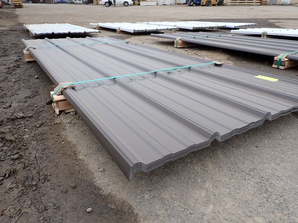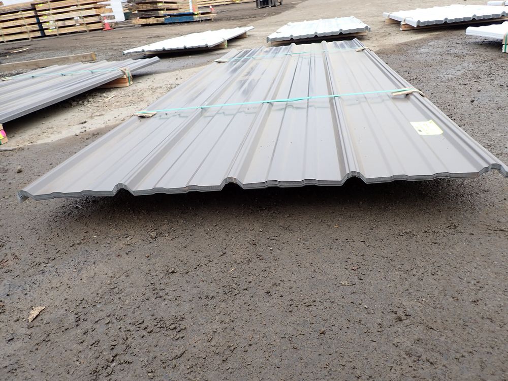 Brown Corrugated Metal Panel 3'x8'. 29 Guage, 25 Piece. Grade: B *Any manufacturer warranties are NOT VALID with any purchase at our Auctions unless stated otherwise.. Weight: 420 lbs.. Sold by: Linear Foot. Sold as: Quantity x Price.