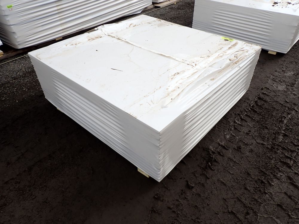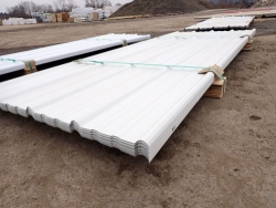 White Corrugated Metal Panel 3'x8'. 24 Guage, 25 Piece. Grade: B *Any manufacturer warranties are NOT VALID with any purchase at our Auctions unless stated otherwise.. Weight: 440 lbs.. Sold by: Linear Foot. Sold as: Quantity x Price.