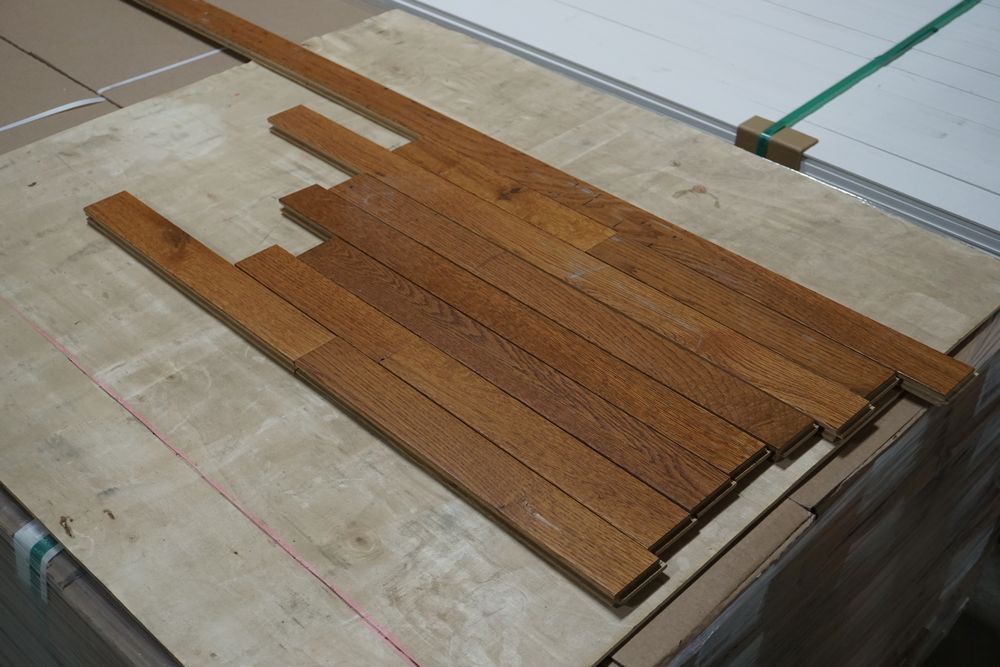 Oak Saddle Hardwood Flooring 3/4"x2 1/4"xRL. By Mullican, Prefinished. Grade: Cabin, 20 Boxes, 24 SF Per Box. *Any manufacturer warranties are NOT VALID with any purchase at our Auctions unless stated otherwise.. Weight: 1350. Sold by: Square Foot. Sold as: Quantity x Price.