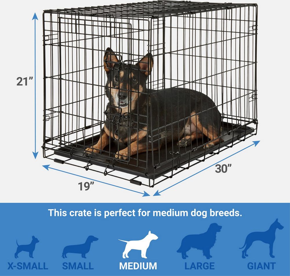 Metal Dog Crate 30" x 19" x 21". Double Door, For Dogs 25-40lbs, Slide-Bolt Latch, Includes Leakproof Plastic Pan, Folds Flat For Convenient Storage. Grade: A *Any manufacturer warranties are NOT VALID with any purchase at our Auctions unless stated otherwise.. Weight: 17. Sold by: Piece. Sold as: Quantity x Price.
