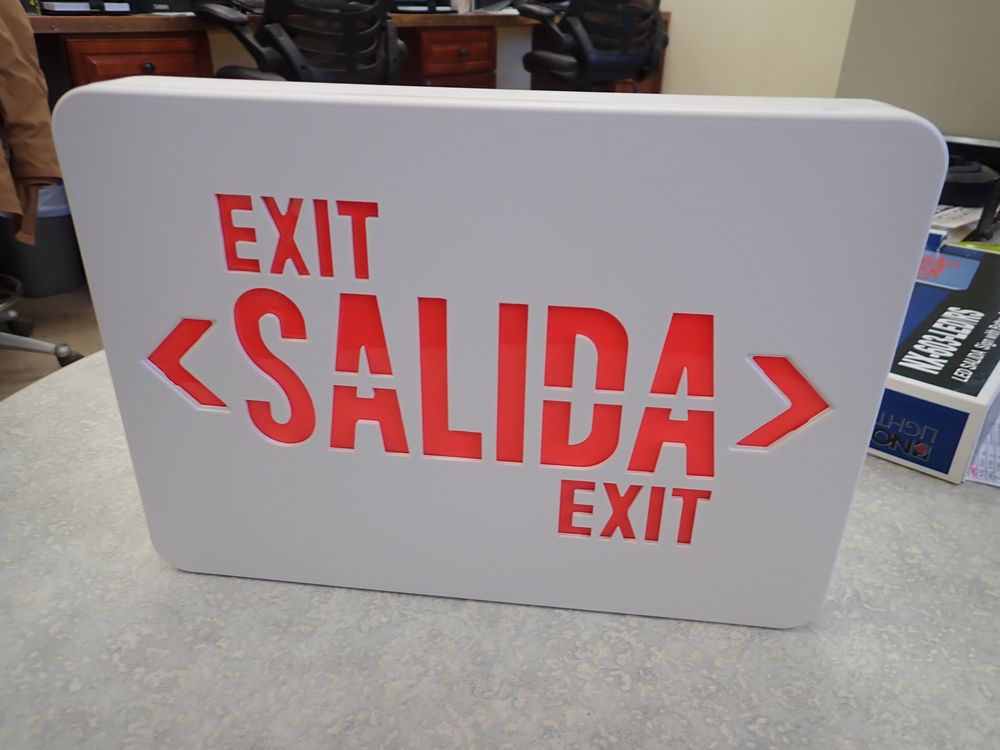 LED Red Exit SALIDA Double Sign With Battery Backup in White Finish. By: Nora Lighting. Model # NX-603-LED/RS. Grade: A *Any manufacturer warranties are NOT VALID with any purchase at our Auctions unless stated otherwise.. Weight: 8. Sold by: Piece. Sold as: Quantity x Price.