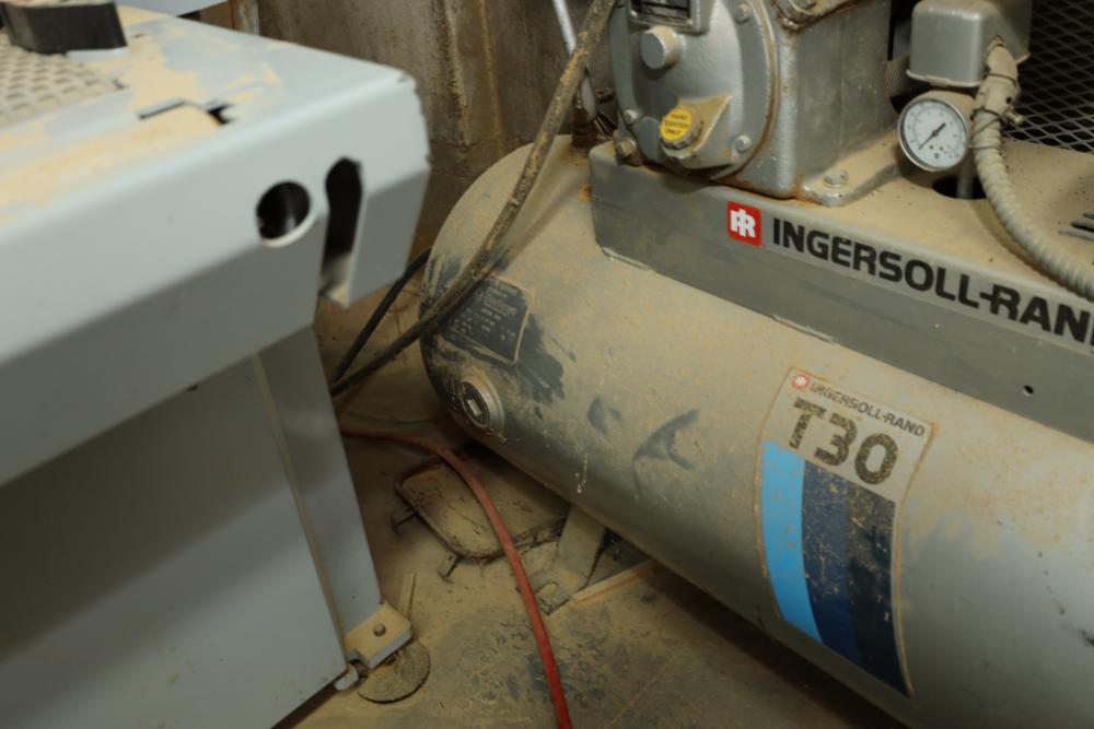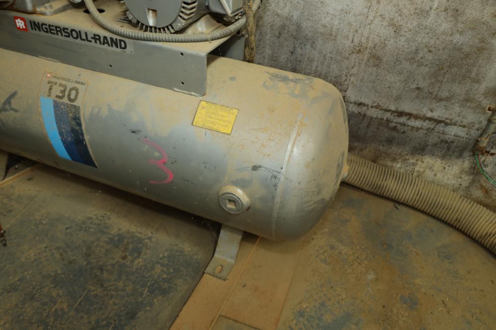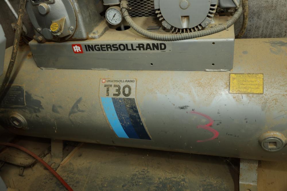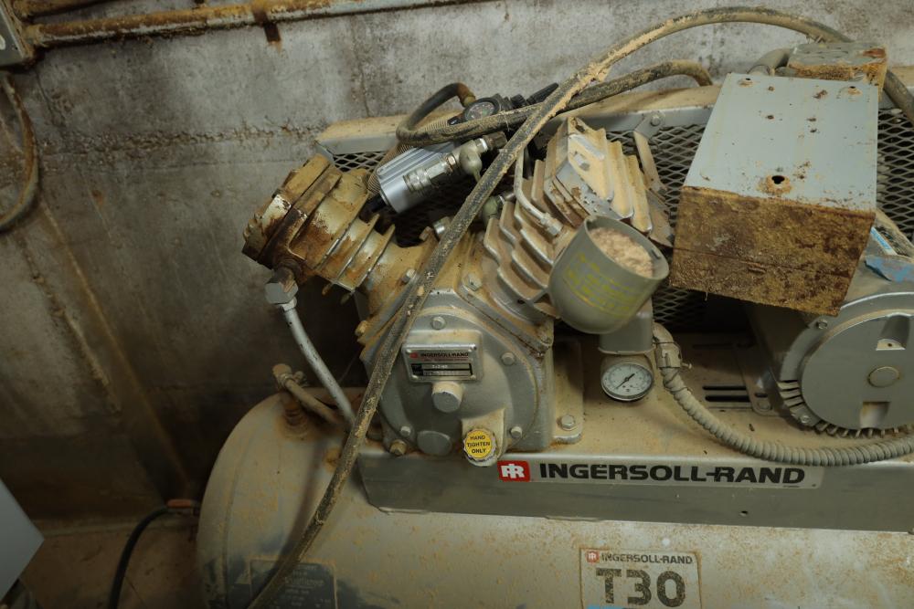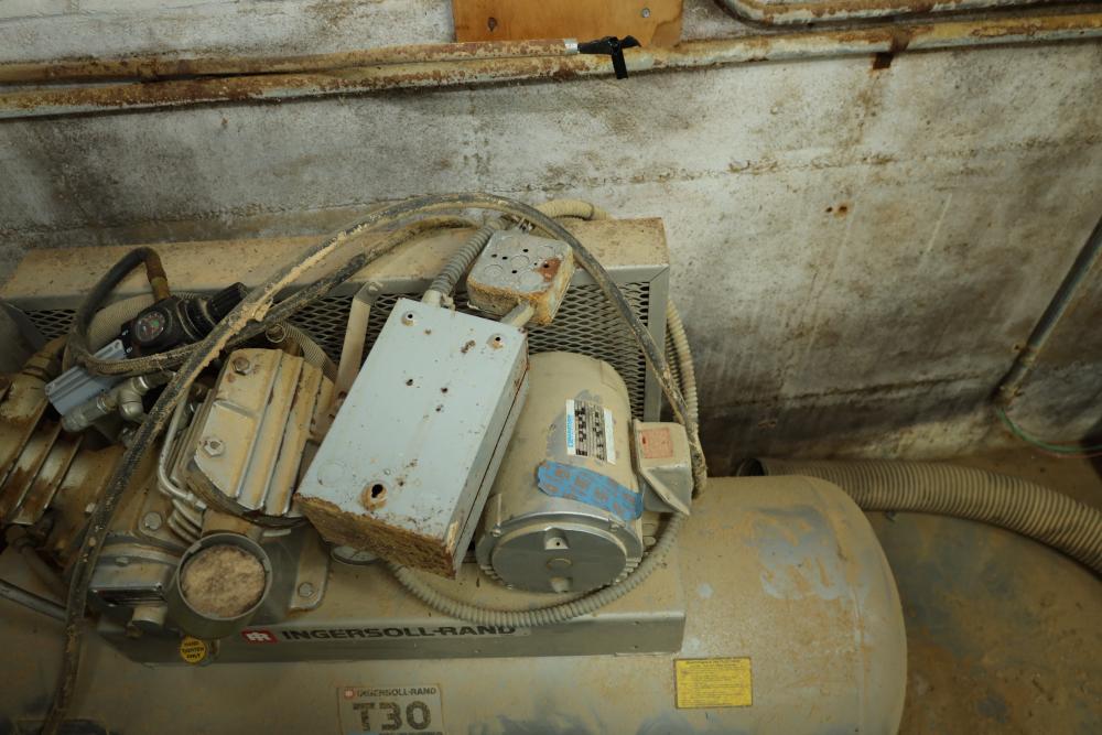 Ingersoll-Rand model T30 air compressor with Ingersoll-Rand compressor head model 24-50, and a marathon electric 5HP electric motor approx. 63 long x 42 tall. Buyer must take all. Buyer is responsible for the proper and safe removal to the first disconnect including bringing all the proper tools, equipment, supplies, and help. There will NOT be any help or equipment onsite to assist in removal.