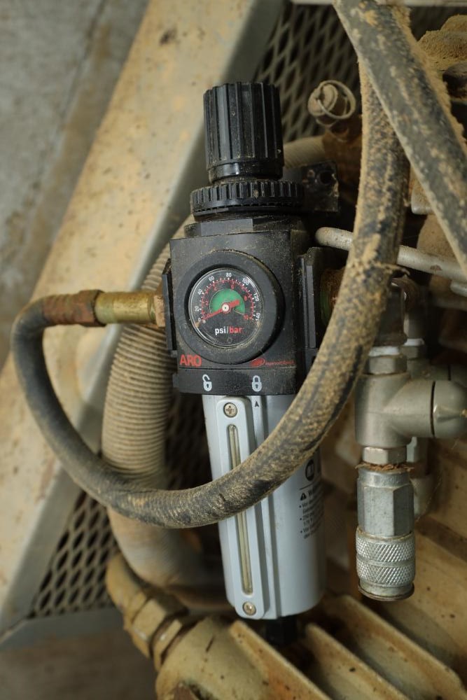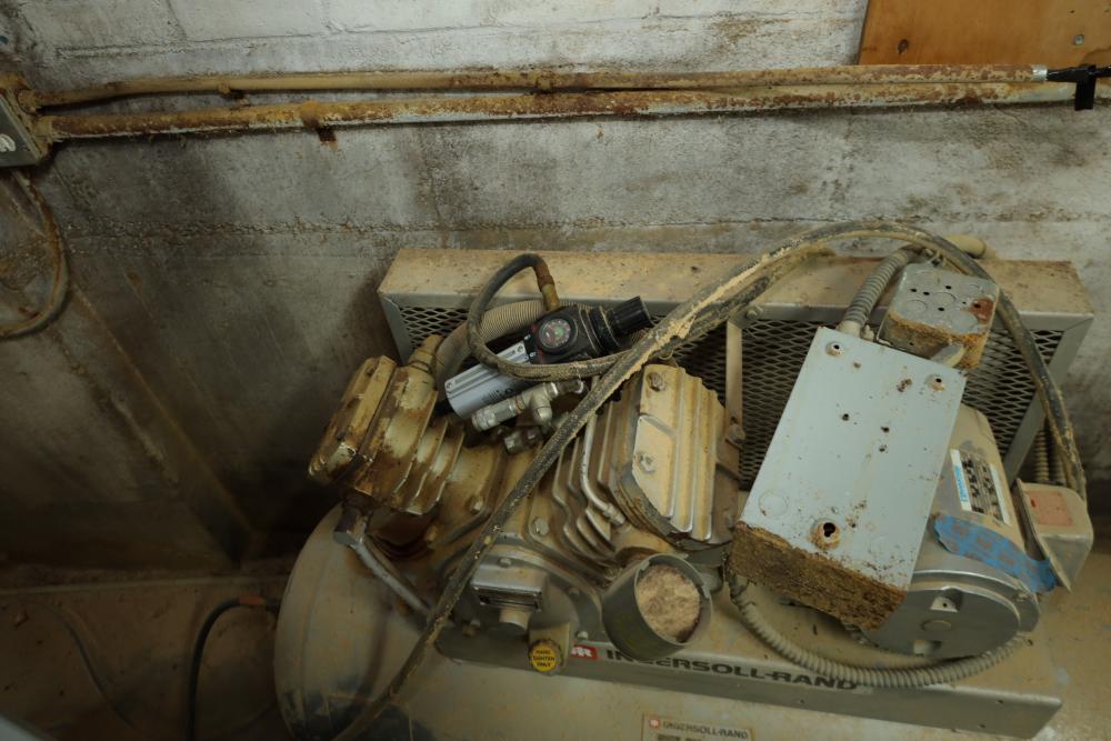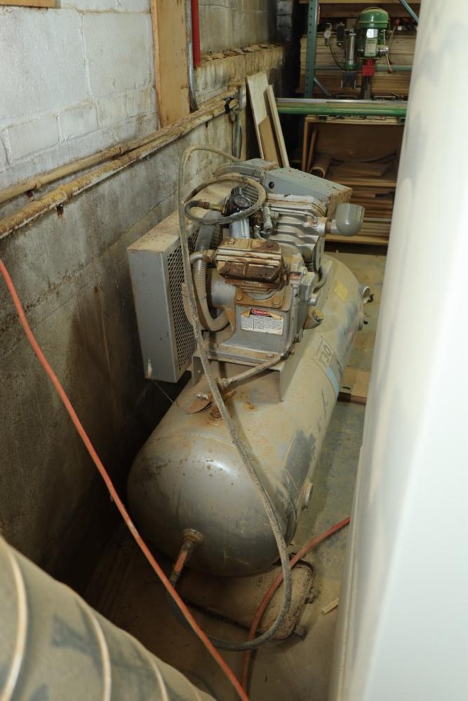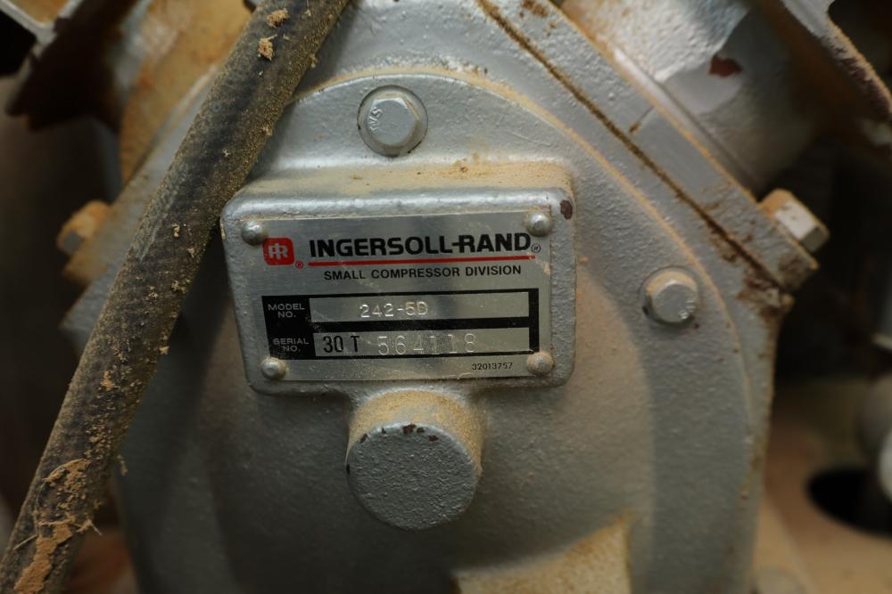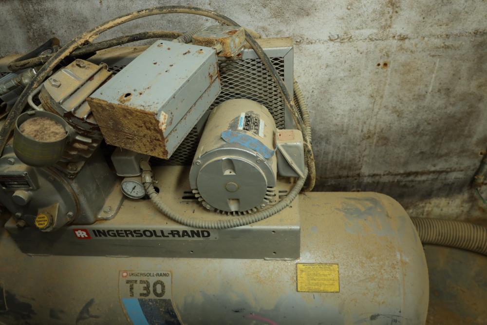 Ingersoll-Rand model T30 air compressor with Ingersoll-Rand compressor head model 24-50, and a marathon electric 5HP electric motor approx. 63 long x 42 tall. Buyer must take all. Buyer is responsible for the proper and safe removal to the first disconnect including bringing all the proper tools, equipment, supplies, and help. There will NOT be any help or equipment onsite to assist in removal.